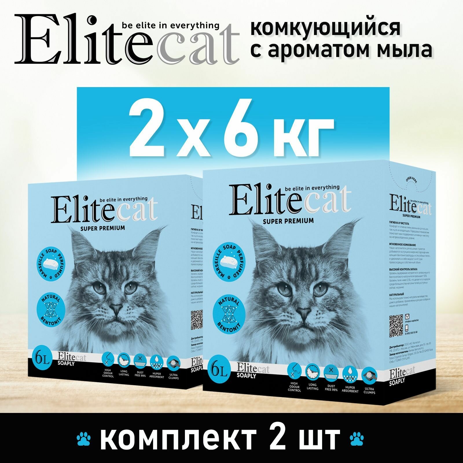 Купить ELITECAT Наполнитель комкующийся с ароматом изысканного мыла "Soaply", 6л, КОМПЛЕКТх2шт