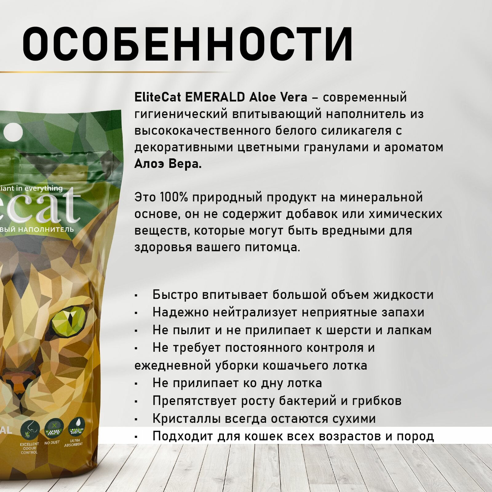 СохранитьELITECAT Наполнитель впитывающий силикагель "Emerald Aloe Vera", 7.6л, КОМПЛЕКТх2шт интересное: