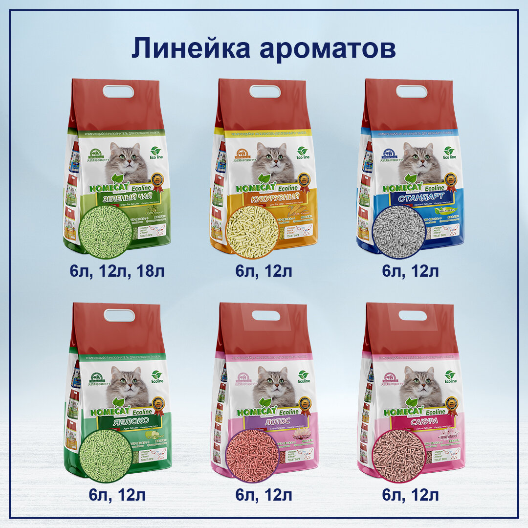 Наполнитель для кошачьих туалетов Homecat "Эколайн" Стандарт, комкующийся 6 л интересное: