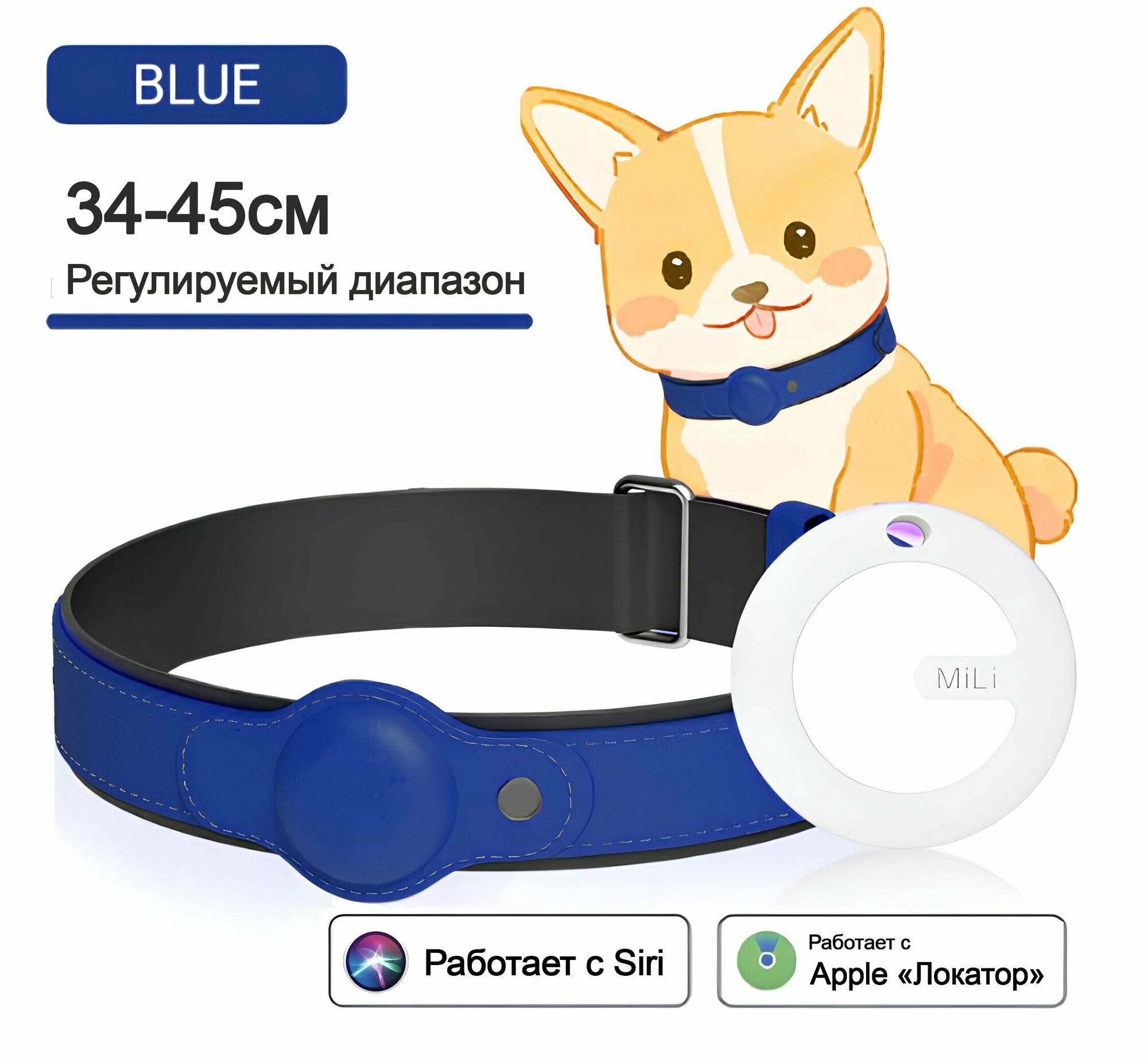 Купить MiLi MiCollar - Влагозащитный ошейник с GPS-трекером MiTag с сертификацией MFI от Apple, Синий 34-45см