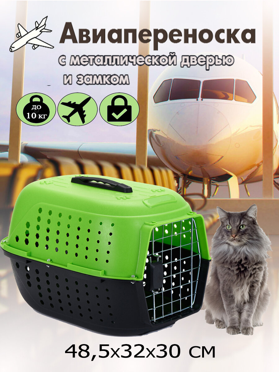 Авиа переноска для домашних животных "Чистый котик" 47,5х32,5х25 см, нержавеющая сталь, зеленый