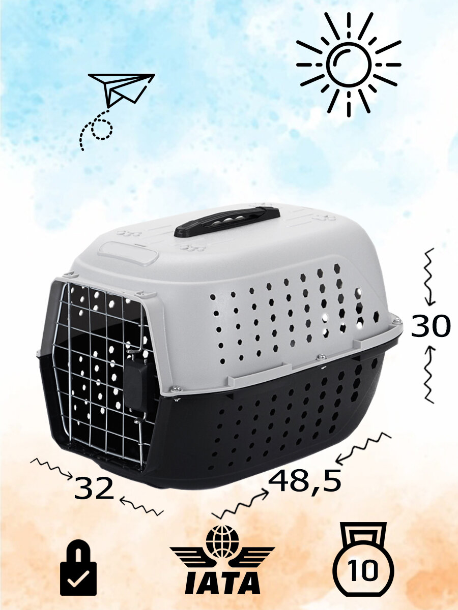 Авиа переноска для домашних животных "Чистый котик" 47,5х32,5х25 см, нержавеющая сталь, серый