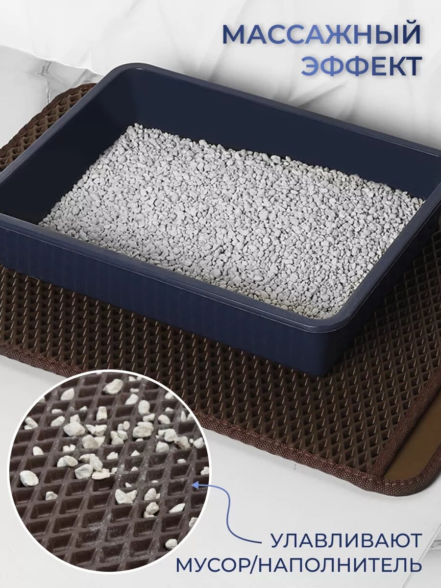 Двухслойный коврик для кошачьего туалета 64*46см, бежевый / Коврик под лоток для кота, собаки