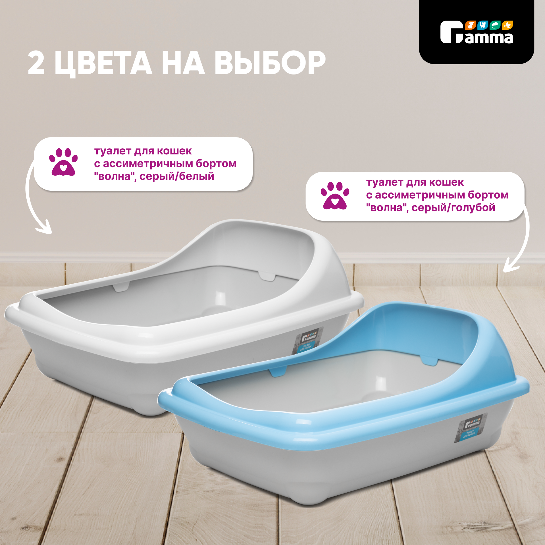 Лоток для кошек с ассиметричным бортом Gamma "Волна", голубой, 45х35х20 см интересное: