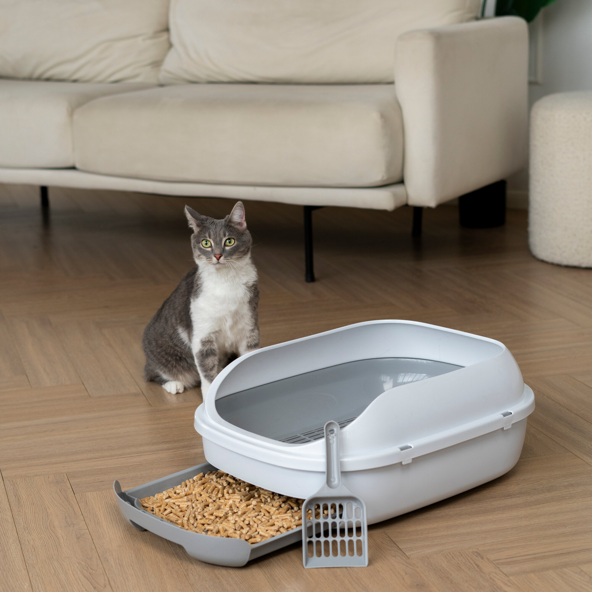Системный лоток для кошек с высоким бортом, выдвижным поддоном и сеткой, большой, STEFAN, (L) 51х40х20, светло-коричневый, BP2913