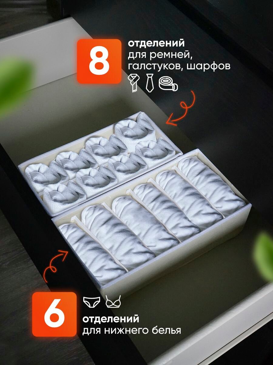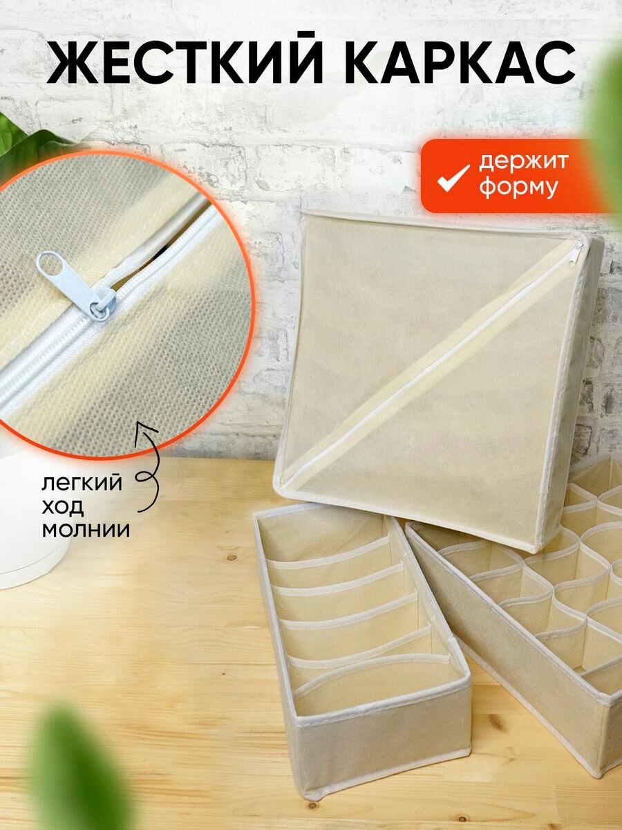 СохранитьОрганайзер для хранения вещей, нижнего белья, бюстгалтеров и носков в шкафу, складной, с разделителями, набор 4 шт, светло-бежевый интересное: