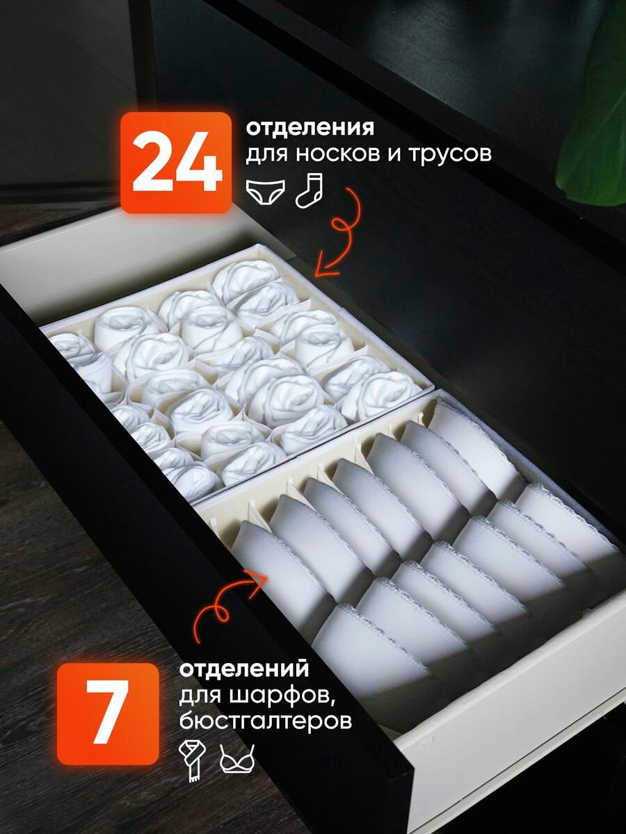 Ниже Вы можете прочитать отзывы на Органайзер для хранения вещей, нижнего белья, бюстгалтеров и носков в шкафу, складной, с разделителями, набор 4 шт, светло-бежевый, ознакомится с подробными характеристиками, посмотреть интересные обзоры и фотографии на Органайзер для хранения вещей, нижнего белья, бюстгалтеров и носков в шкафу, складной, с разделителями, набор 4 шт, светло-бежевый.