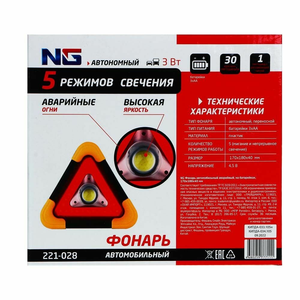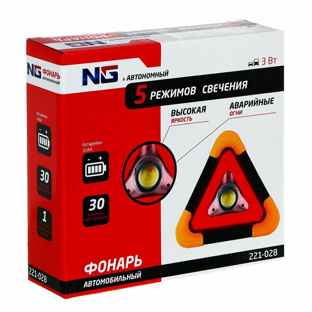 Фонарь автомобильный аварийный NG, на батарейках, 170x180x40 мм/ Знак аварийной остановки интересное: