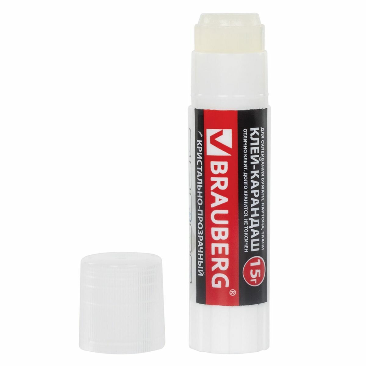 Клей-карандаш Brauberg "Crystal" прозрачный, 15 г (224337)