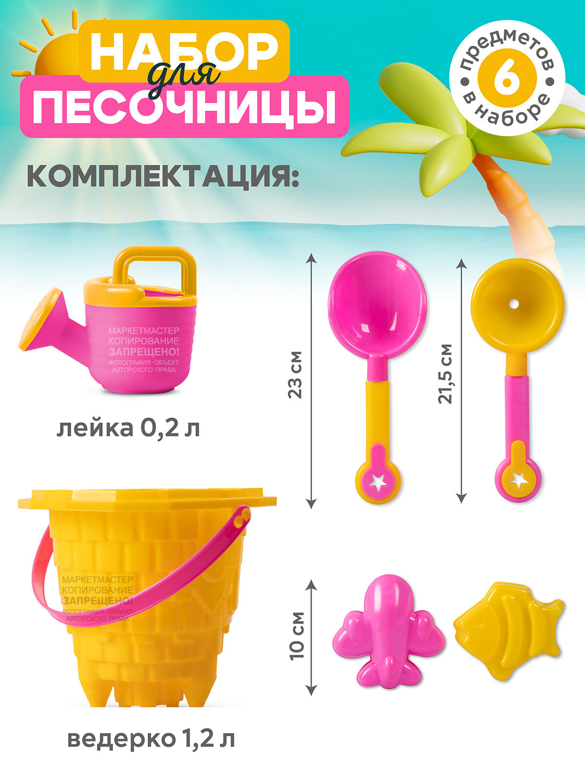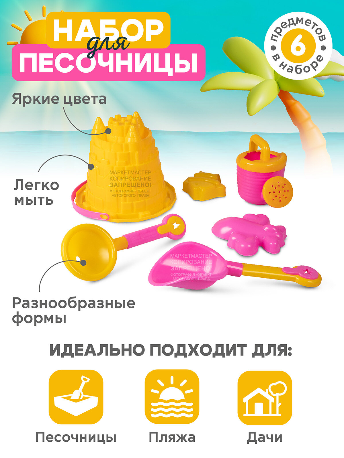 Купить Песочный набор "Замок", ведерко, лопатка, воронка, лейка, JB5300633