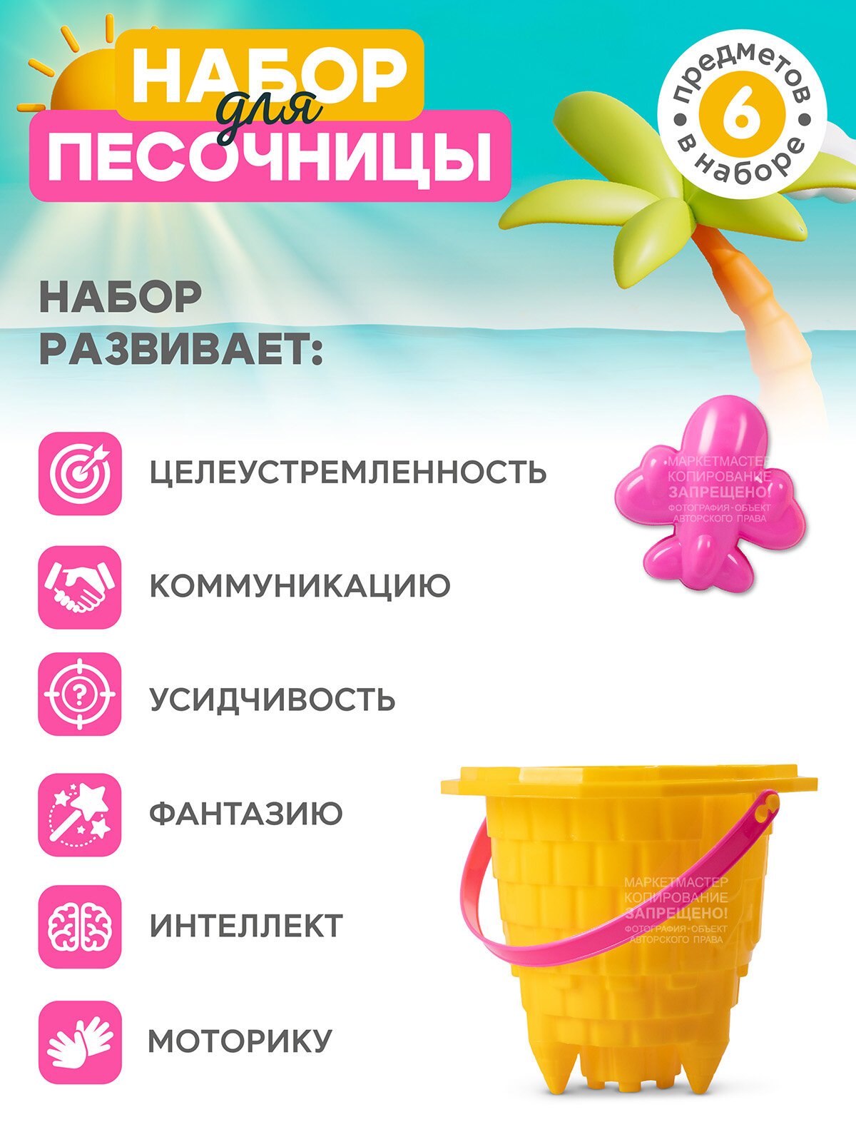 СохранитьПесочный набор "Замок", ведерко, лопатка, воронка, лейка, JB5300633 интересное: