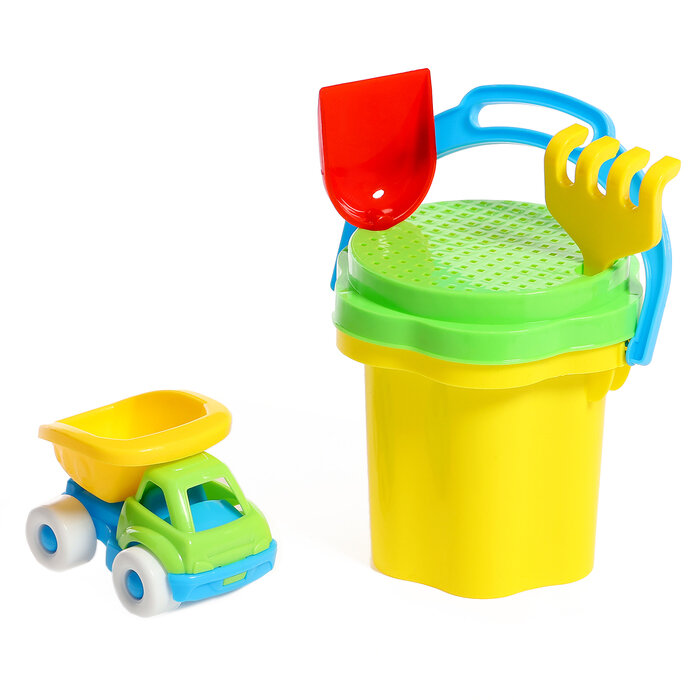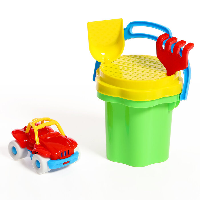 Песочный набор № 106 ведро 0,3 л, сито, совок, грабли, машинка Бублик арт.01806