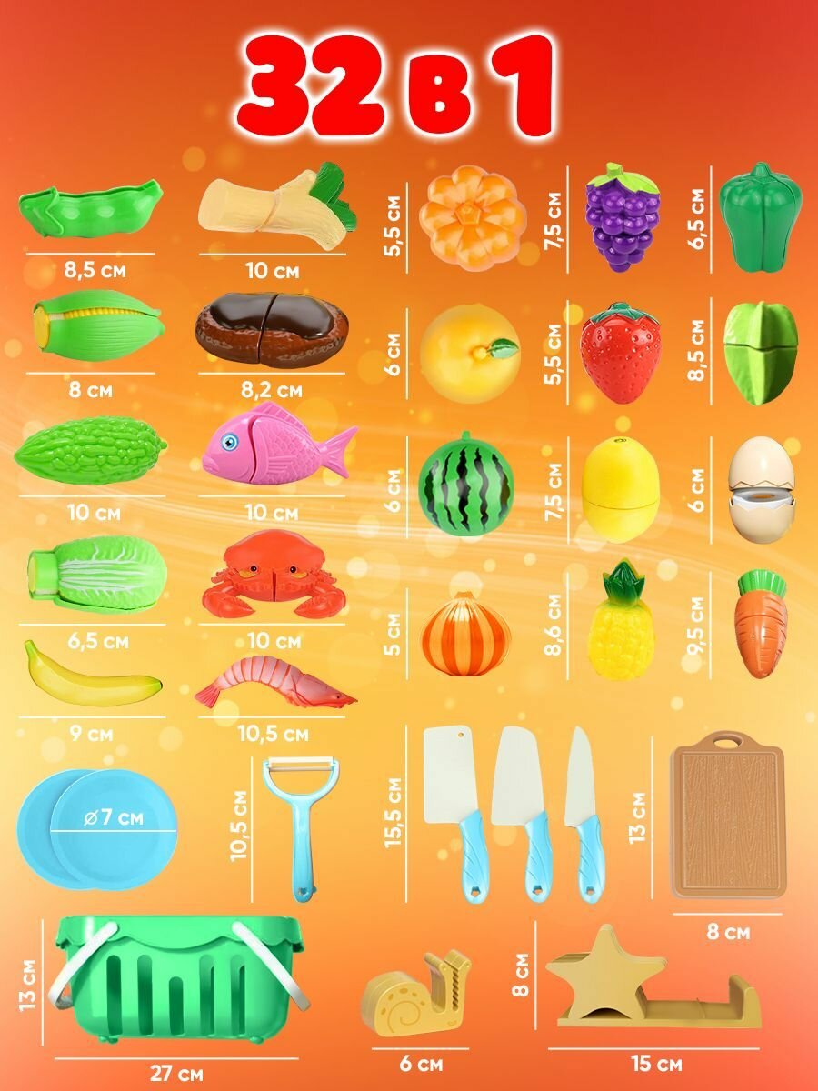 Игрушечная еда фрукты овощи на липучках Набор продукты, 32шт