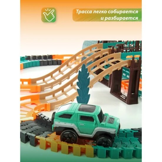 Автотрек с машинками, Veld Co / 138 деталей / Детский трек на батарейках с динозаврами
