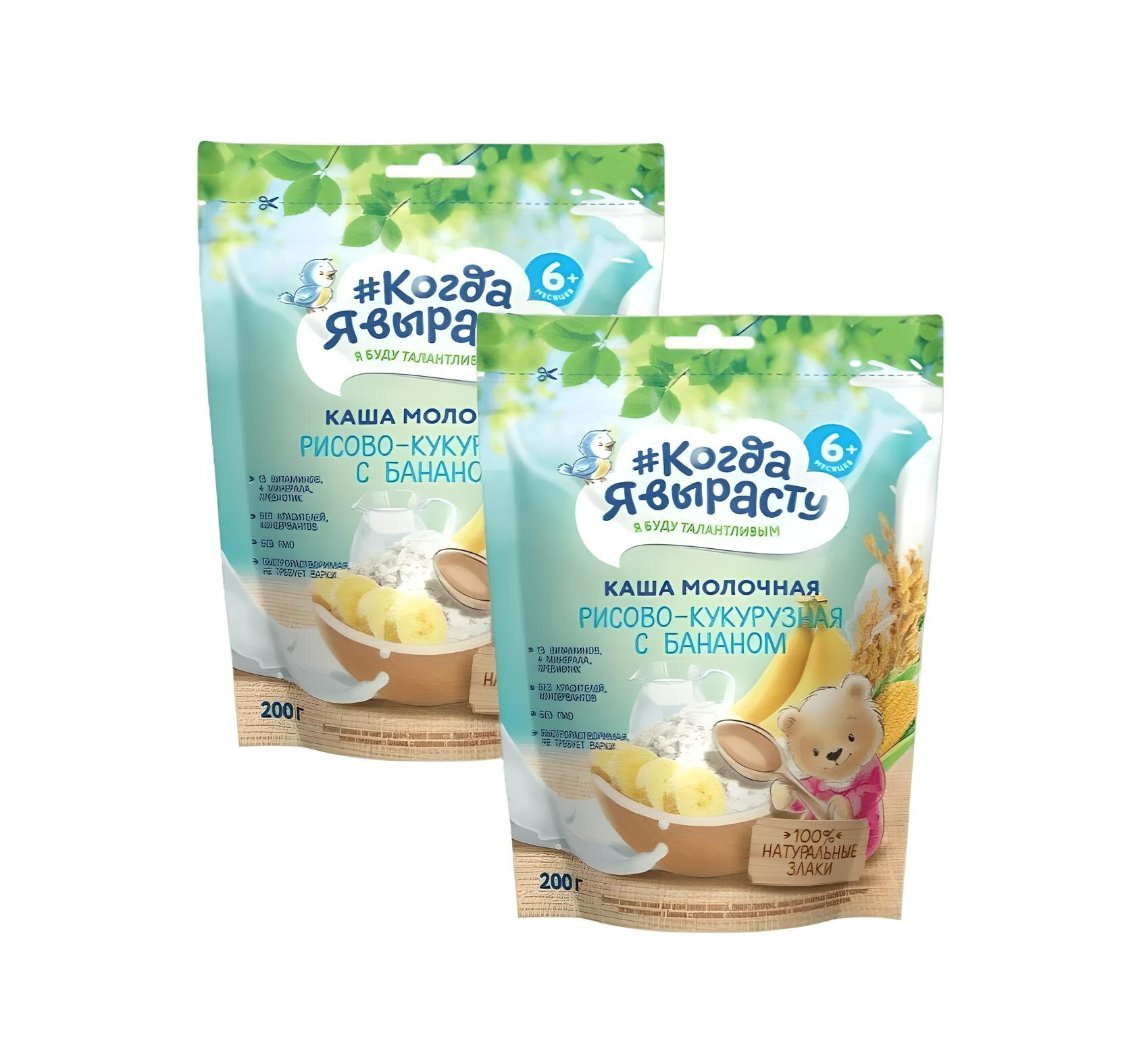 Купить Когда Я Вырасту Каша Молочная Рис, Кукуруза, Банан, 200гр х 2шт