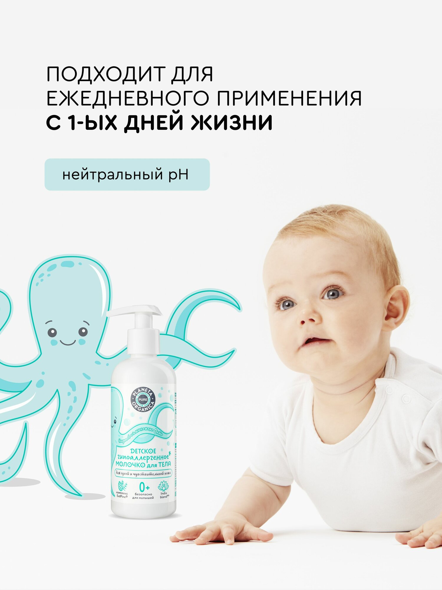 Planeta Organica Pure Kids Гипоаллергенное молочко для тела детское увлажняющее для новорожденных 0+, 270 мл интересное: