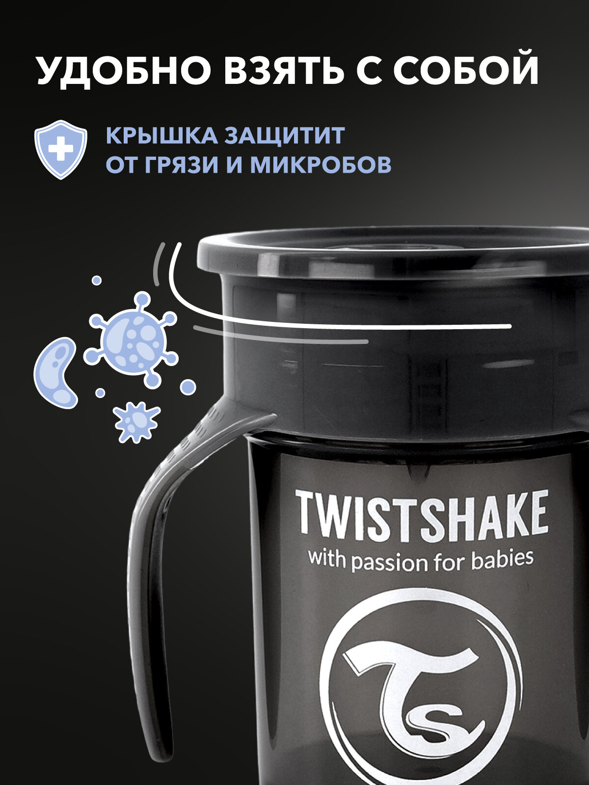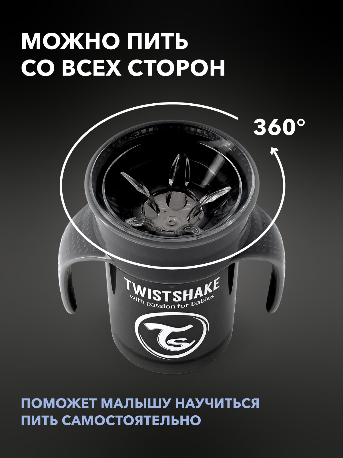 Детский поильник непроливайка Twistshake 360 cup 230 мл. Чёрный. Возраст 6+ мес. интересное: