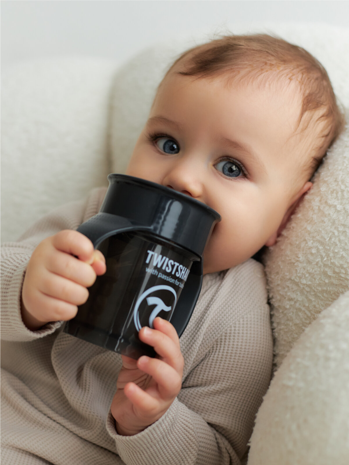 Детский поильник непроливайка Twistshake 360 cup 230 мл. Пастельный серый (Pastel Grey). Возраст 6+ мес.