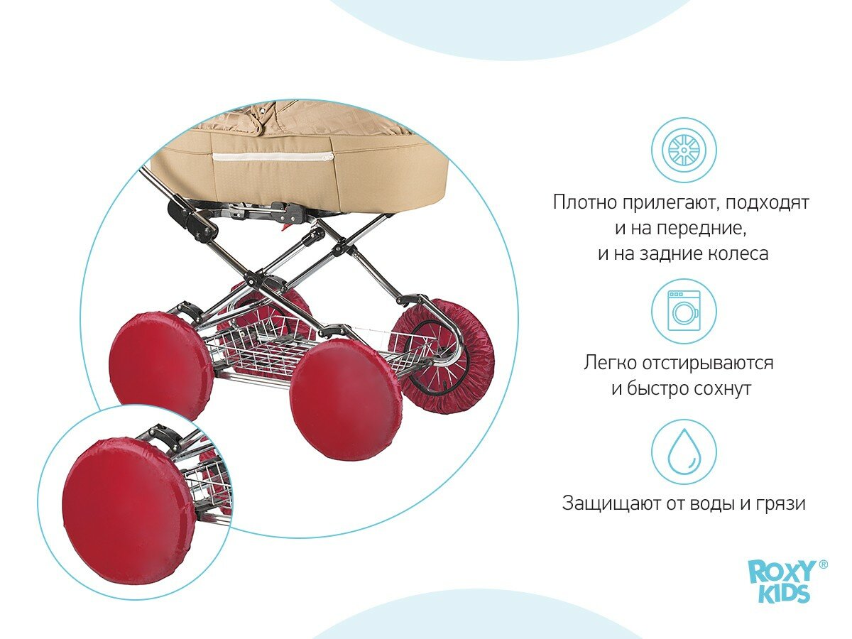 Чехлы на колеса коляски Roxy-Kids, 4 шт, бордовые, до 32 см интересное: