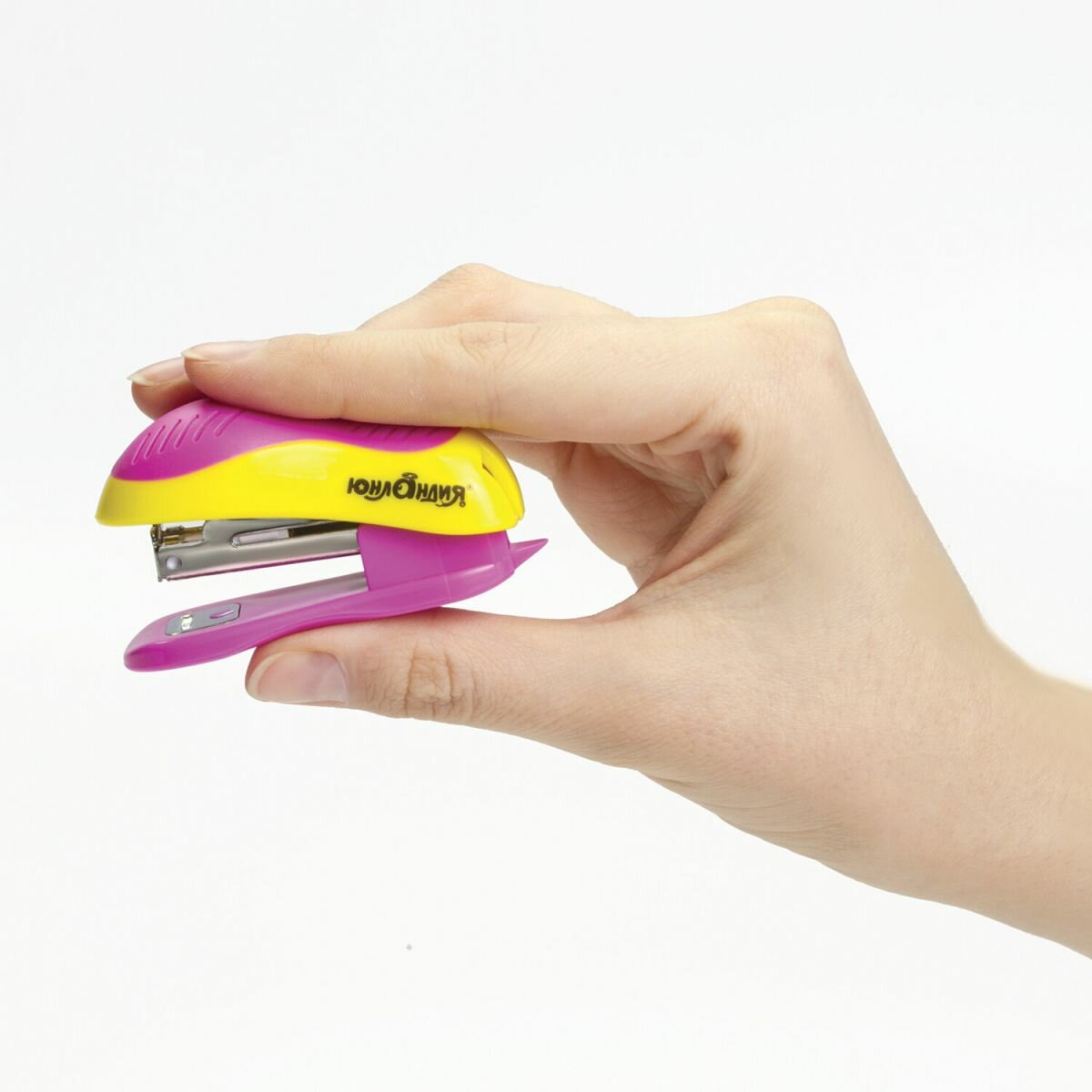 Степлер Юнландия №10, Мини, до 15 листов, с антиом, эргономичный, желто-розовый
