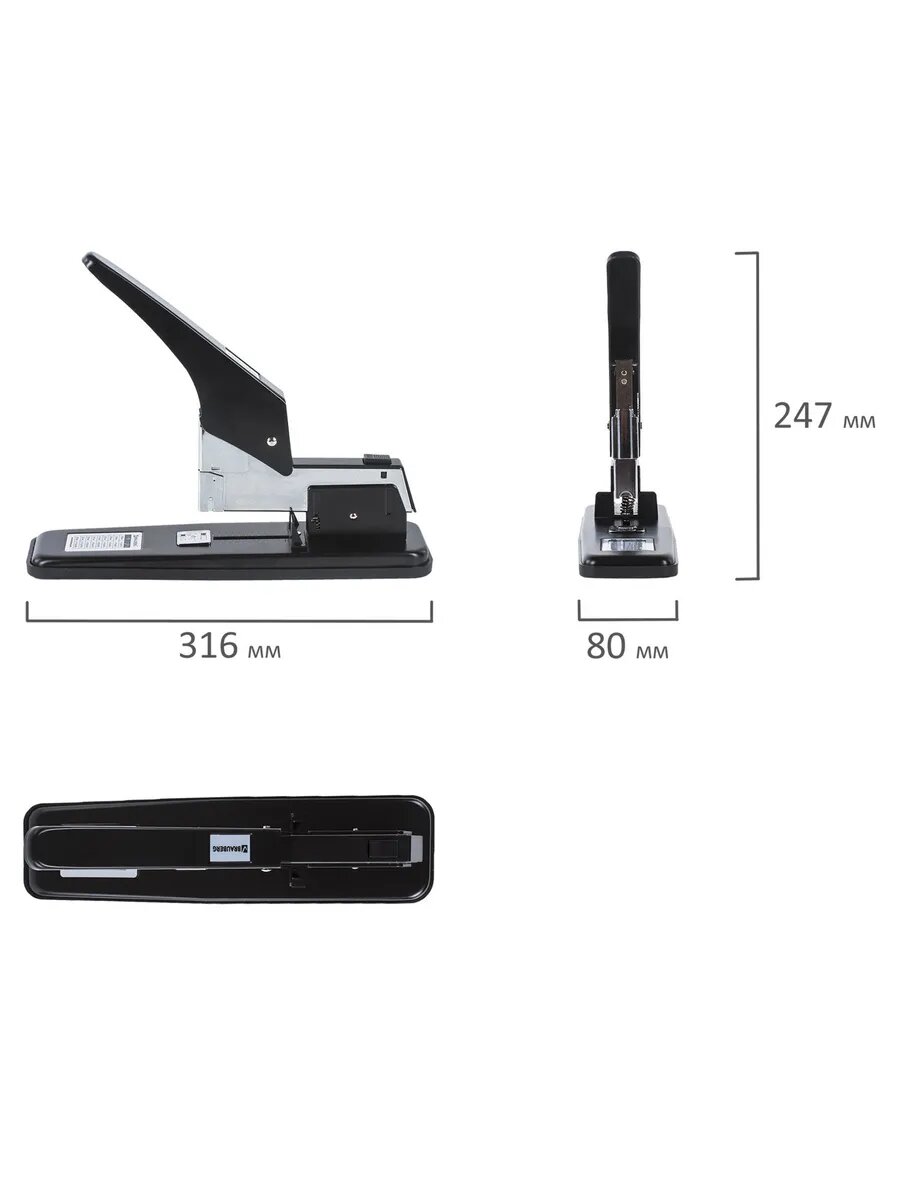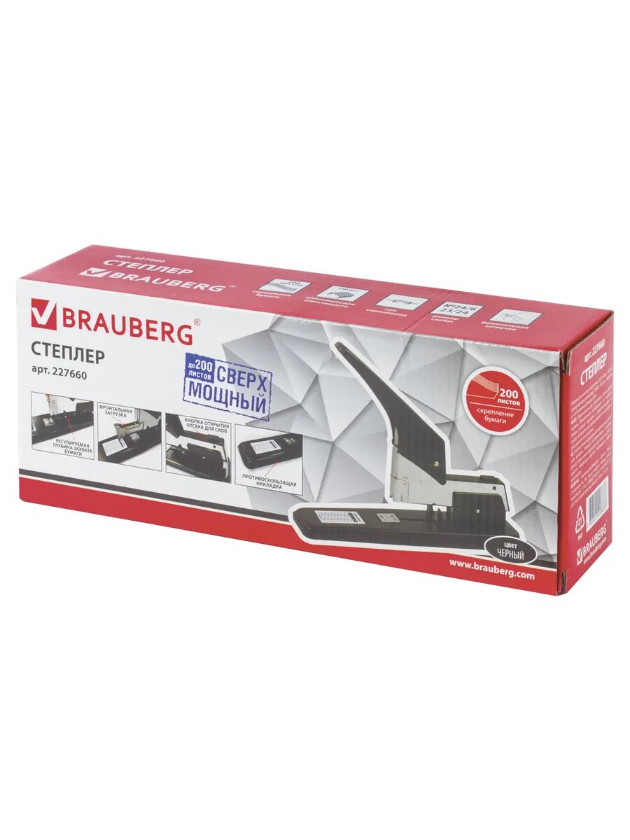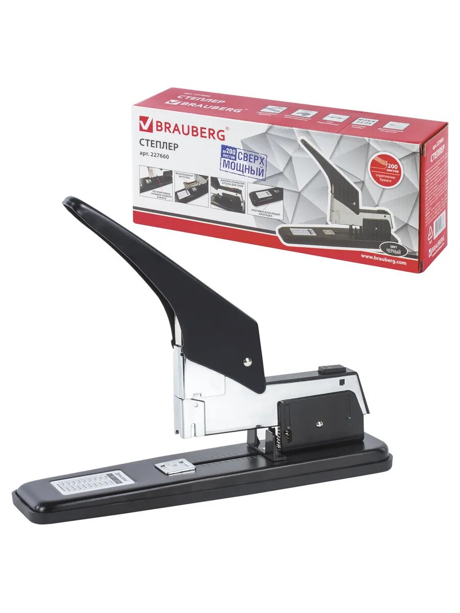 Степлер мощный №24/6-23/24 металлический BRAUBERG "Heavy duty", до 200 листов, черный, 227660
