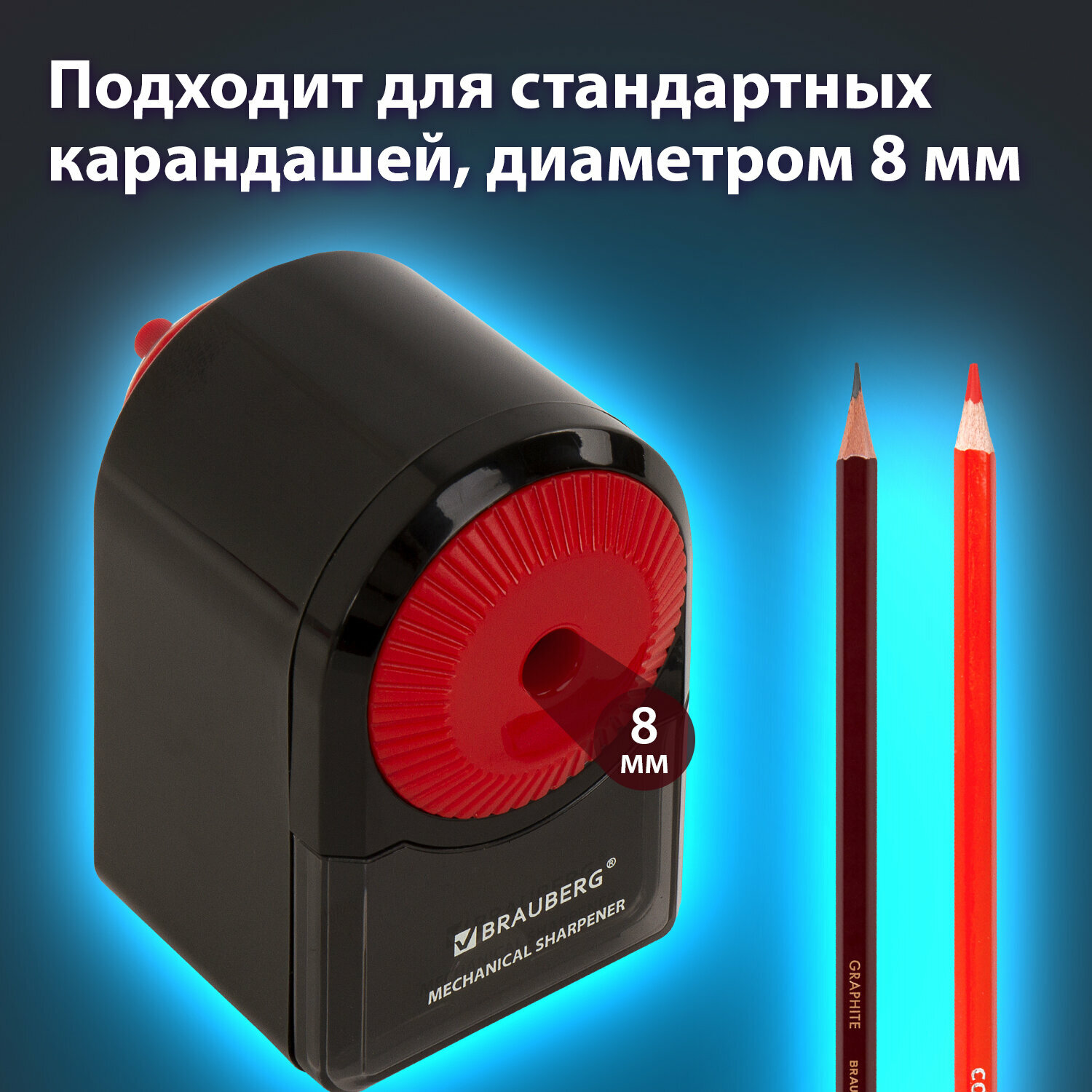 СохранитьТочилка механическая настольная для карандашей с контейнером для стружки Brauberg Ultra, для чернографитных и цветных карандашей, крепление к столу, корпус черный с красным, 228626 интересное: