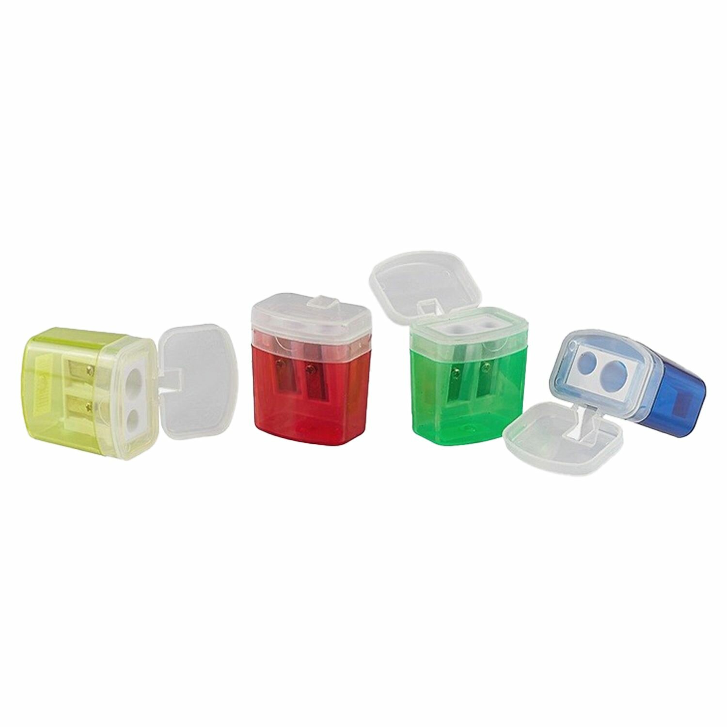 Точилки для карандашей, 4 шт, на 2 отверстия с контейнером и откидной крышкой, MC-Basir, набор двойных канцелярских пластиковых точилок для школы