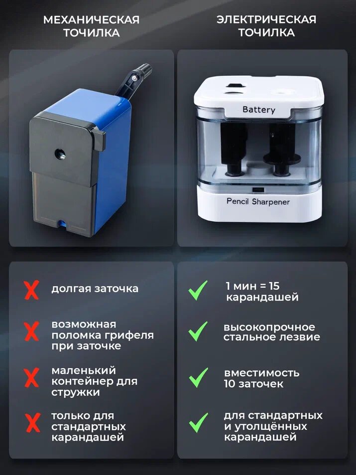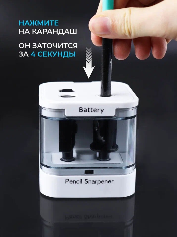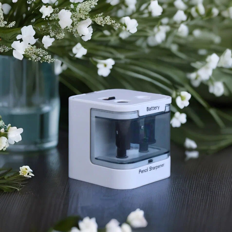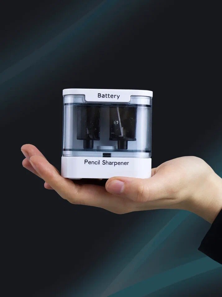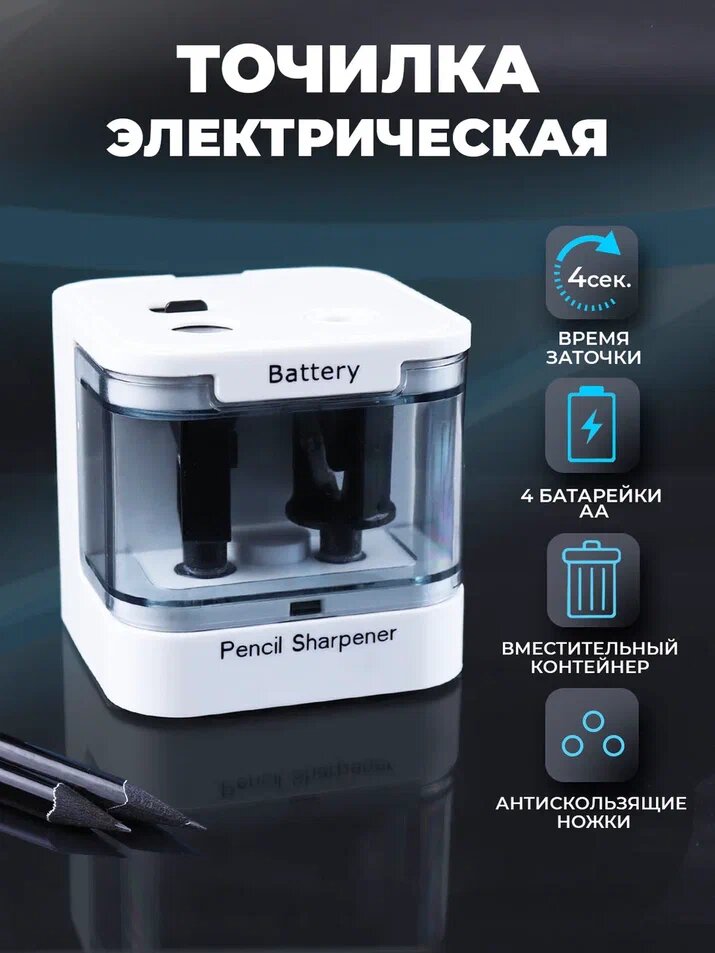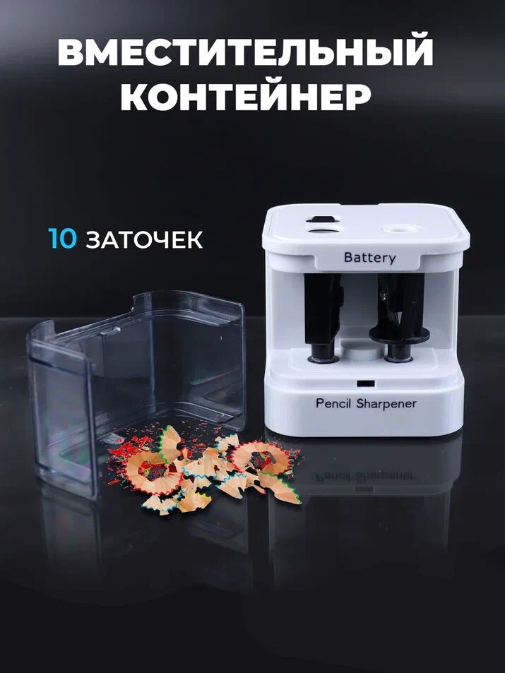 Точилка для карандашей электрическая Protect с двумя лезвиями и контейнером, точилка с питанием от батареек, Белая интересное: