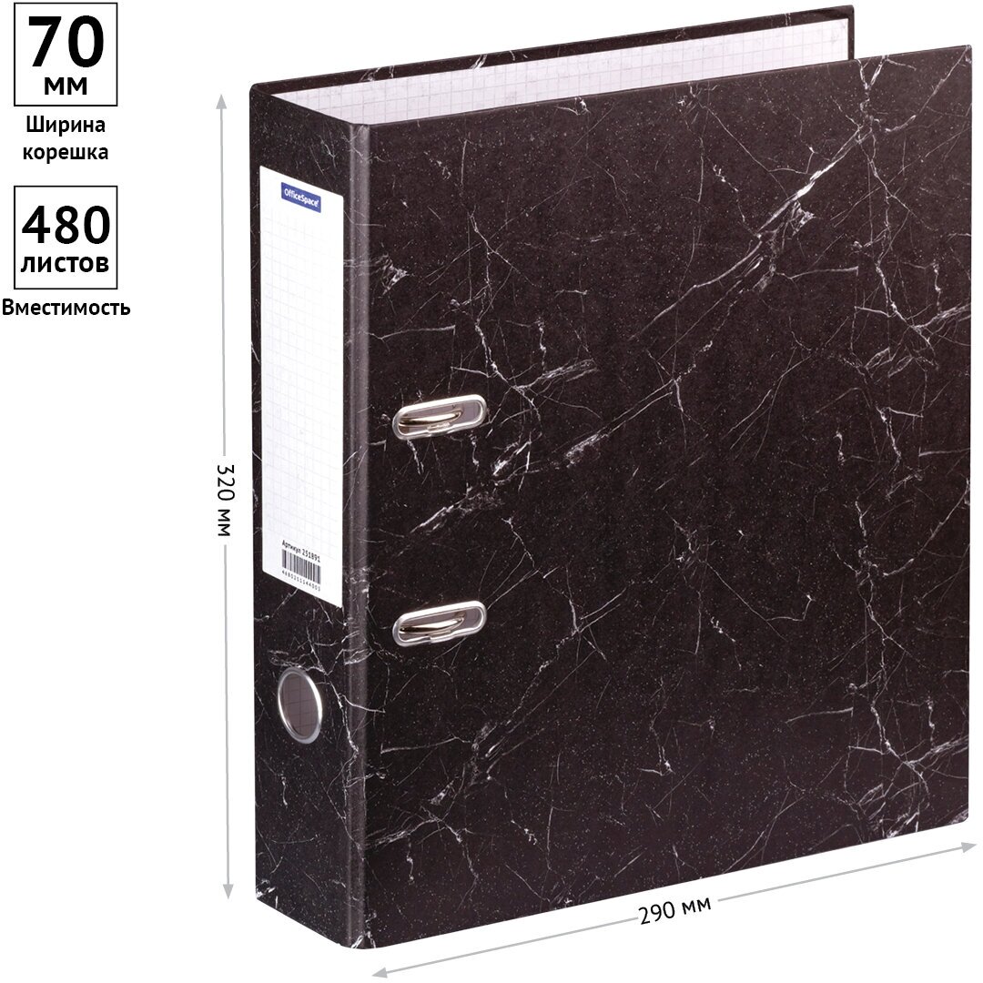 Папка-регистратор OfficeSpace 70мм, мрамор, черная, 153195
