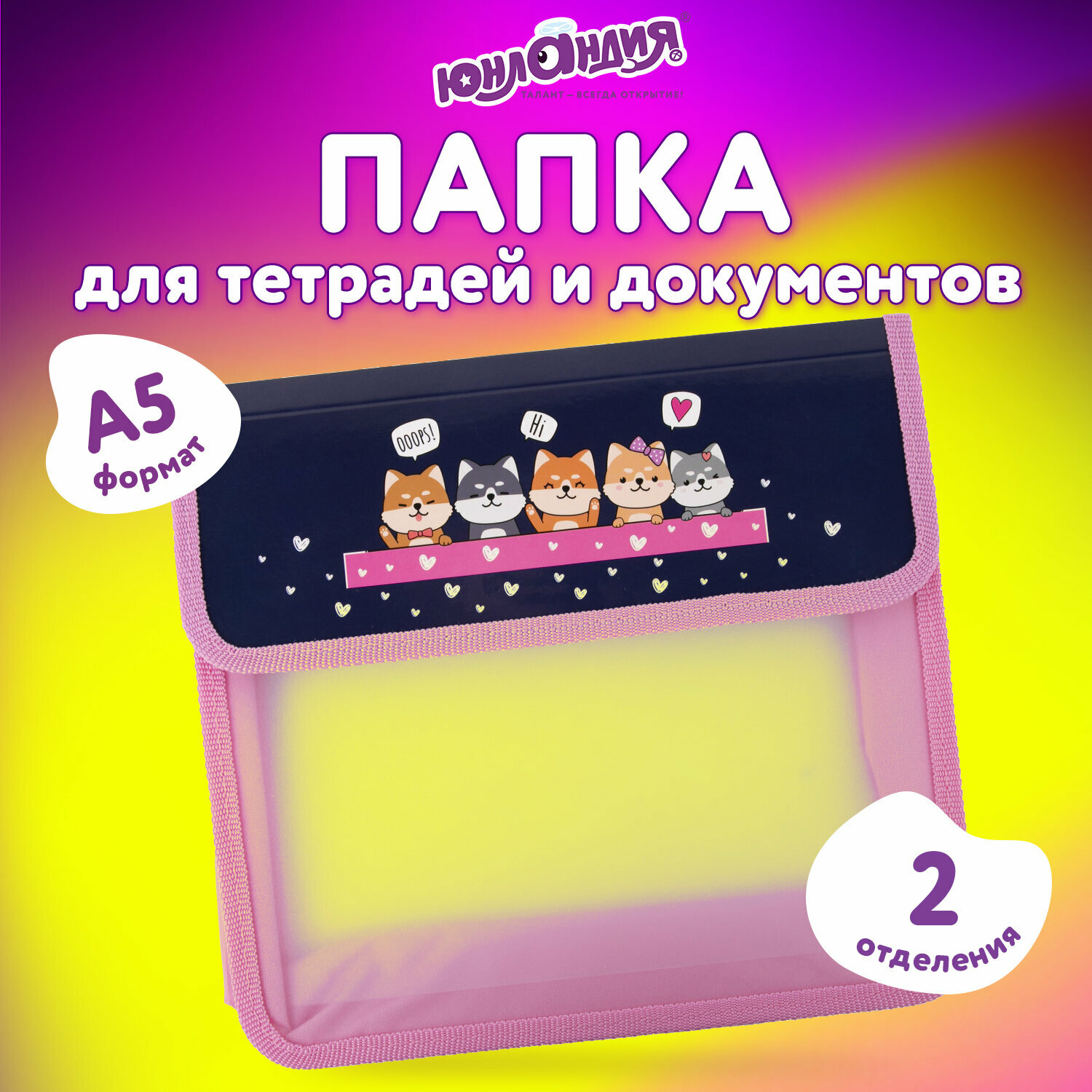 Купить Папка для тетрадей / школы / документов / бумаг на молнии Юнландия А5, пластик, 2 отделения, клапан на липучке, Dream Team, 271490