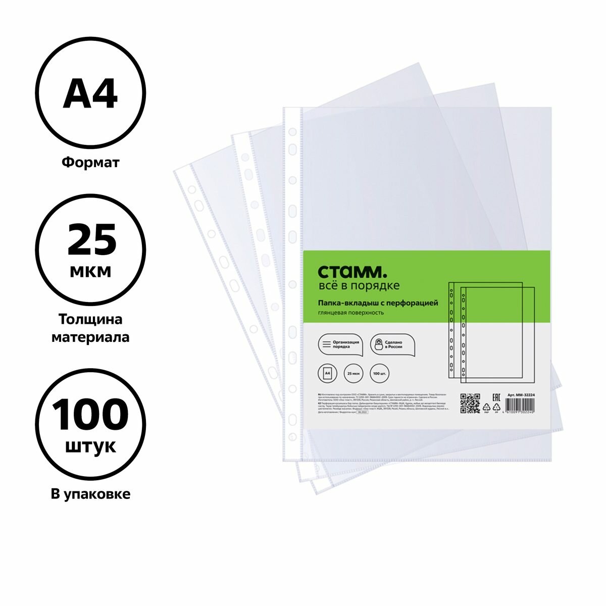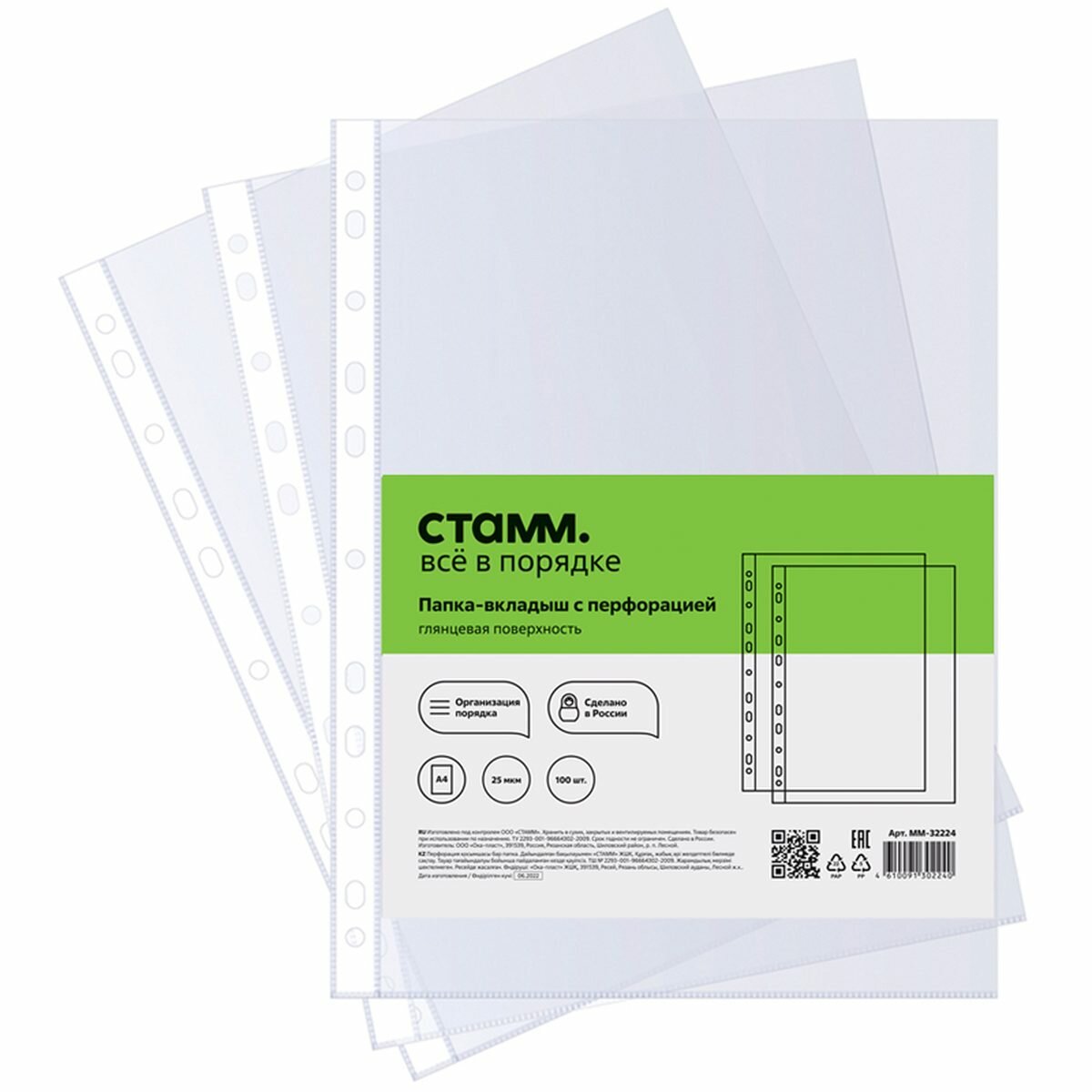 Купить Файл-вкладыш с перфорацией Стамм (А4, 25мкм, глянцевый) (ММ-32224), 100шт.