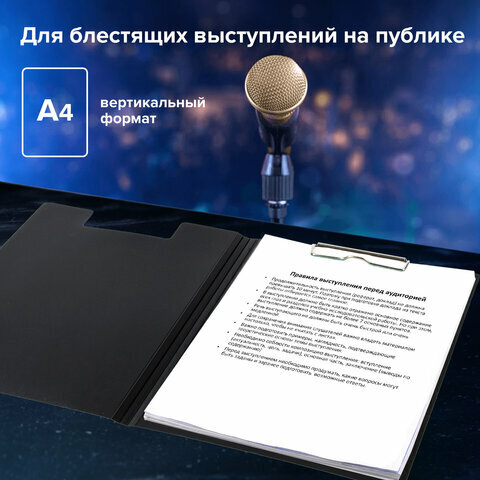 Планшет / доска с зажимом для бумаги / документов канцелярская для выступлений Brauberg Стандарт, А4 (310х230 мм), пластик, черная, 0,9 мм