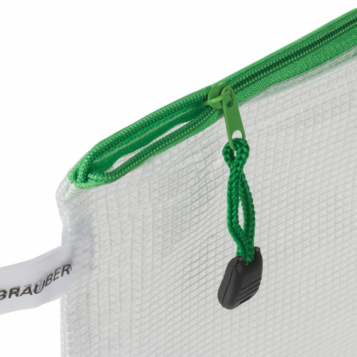 Папка-конверт на молнии Brauberg Segment (А4, 335х243мм, 200мкм, ПВХ, сетка) прозрачная (223886), 12шт.