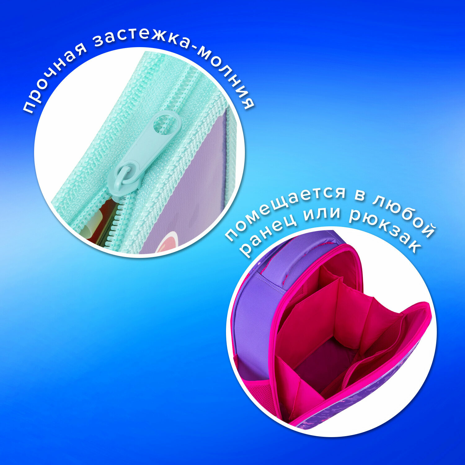 Папка для тетрадей Пифагор А4, 1 отделение, картон/пластик, на молнии, Cat friends, 272127