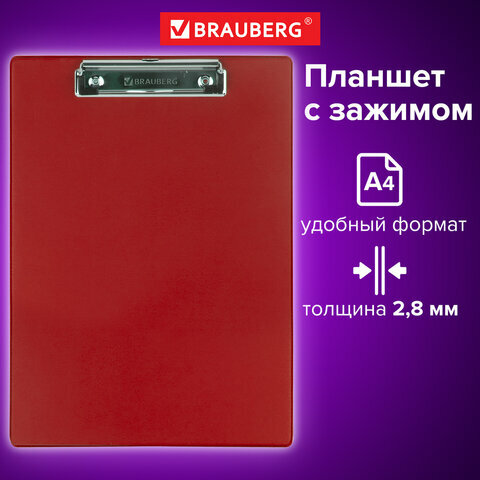 Доска-планшет Brauberg Number One (А4, до 50 листов, картон/пвх) бордовый (232219)