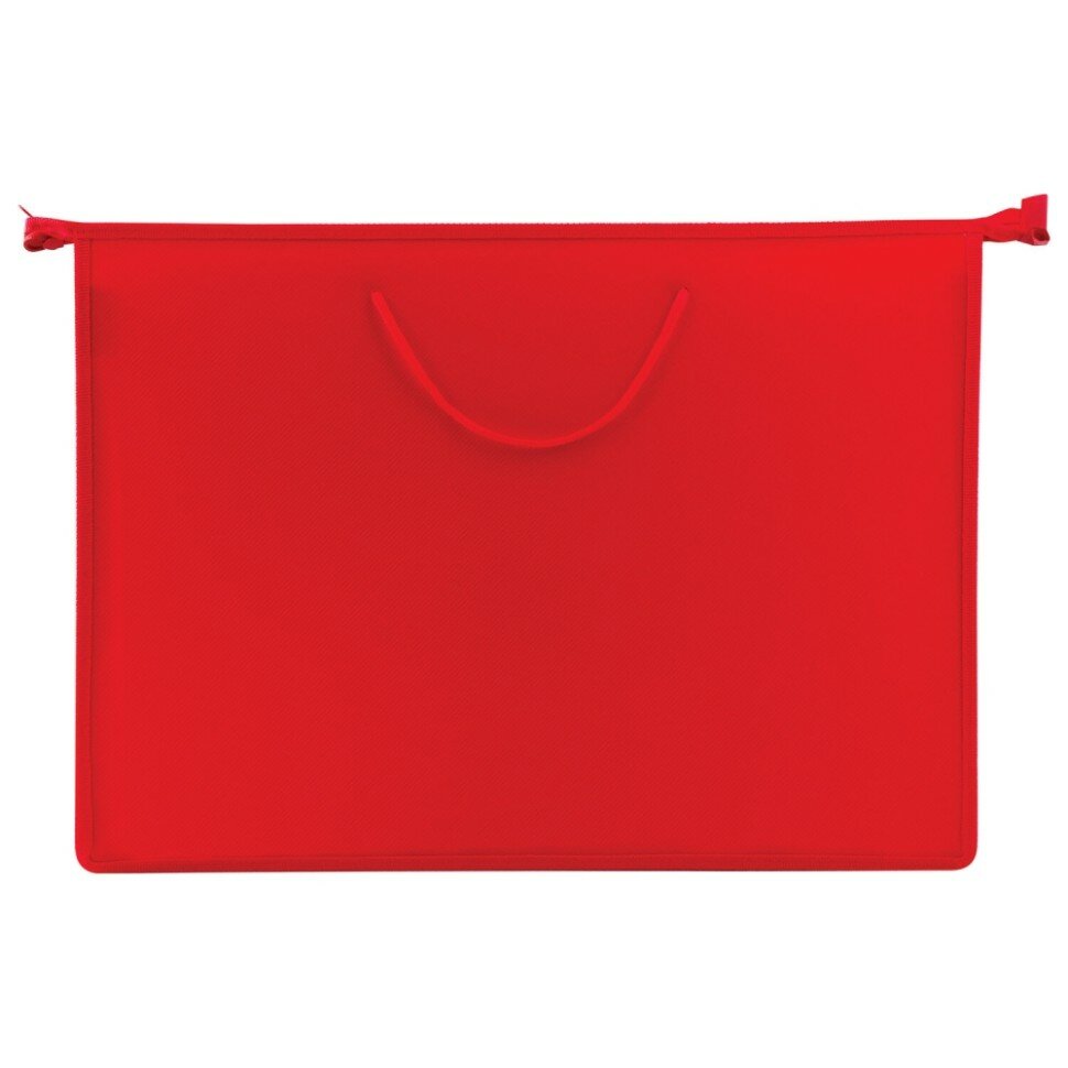 Папка-сумка / портфель для рисунков / чертежей / документов / бумаг / тетрадей / школы А3, ручки-шнурок, пластик,молния сверху,Пифагор,красная, 271133
