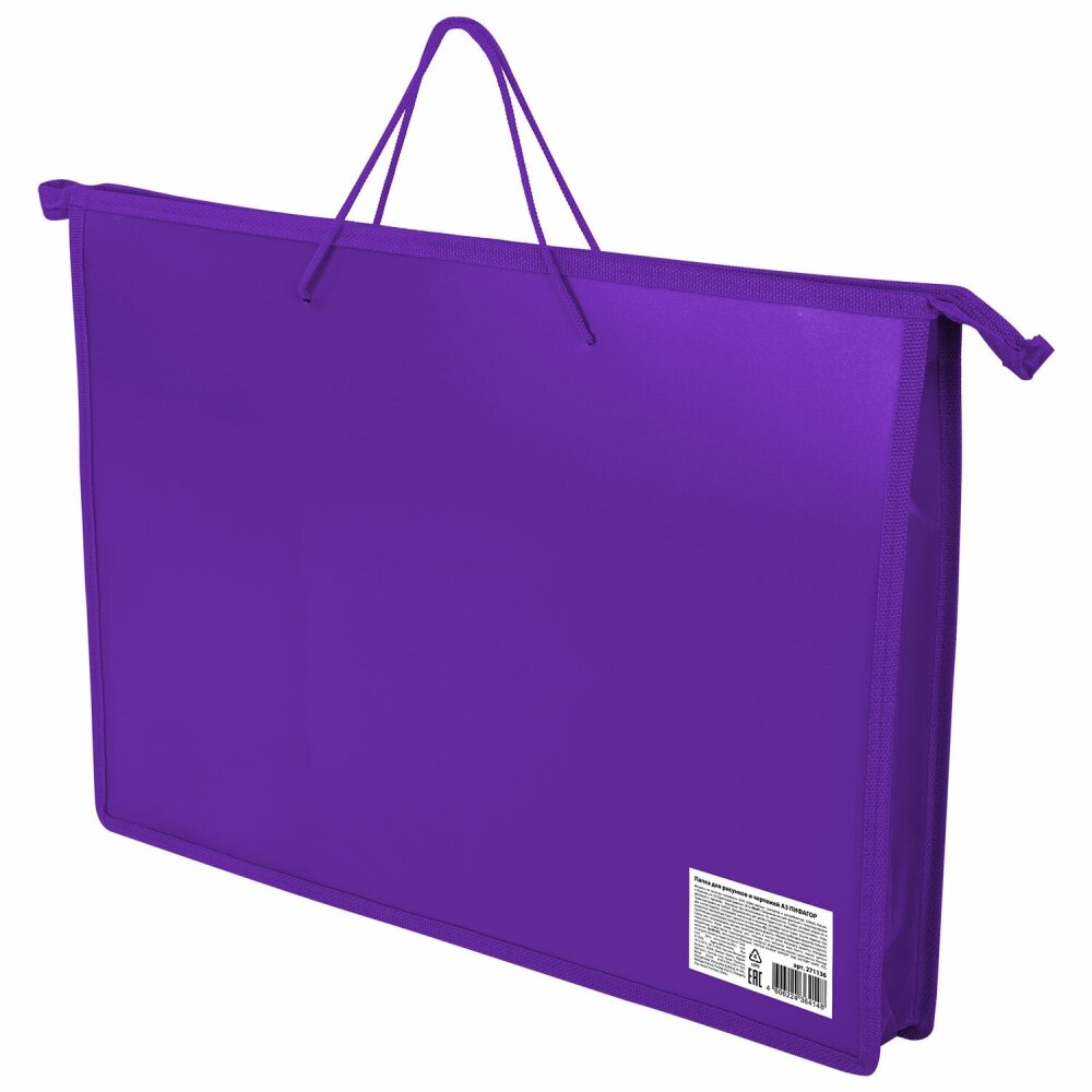 Купить Папка для рисунков и чертежей пифагор А3, пластик, фиолетовая, 271136 (271136)