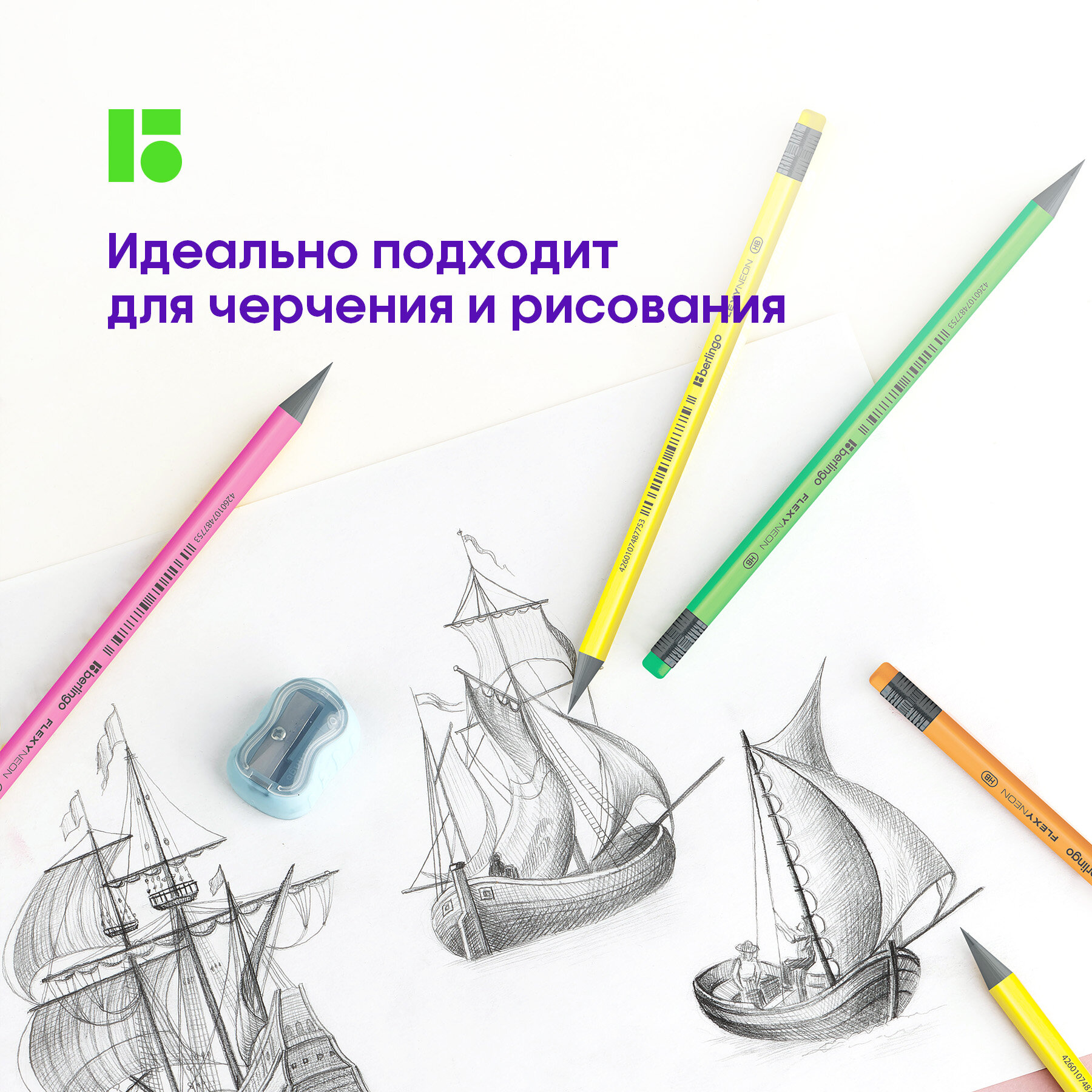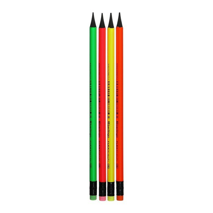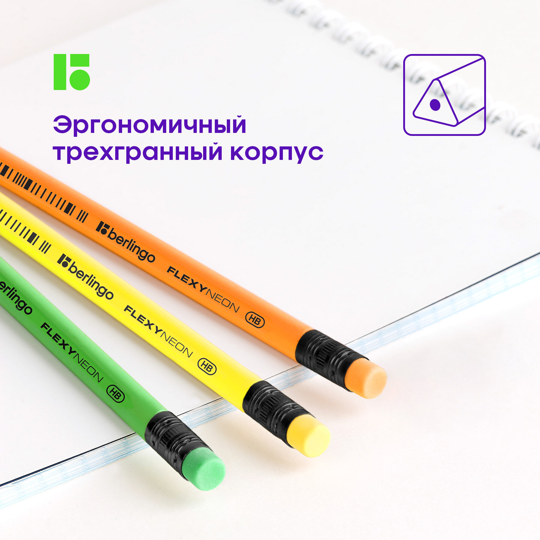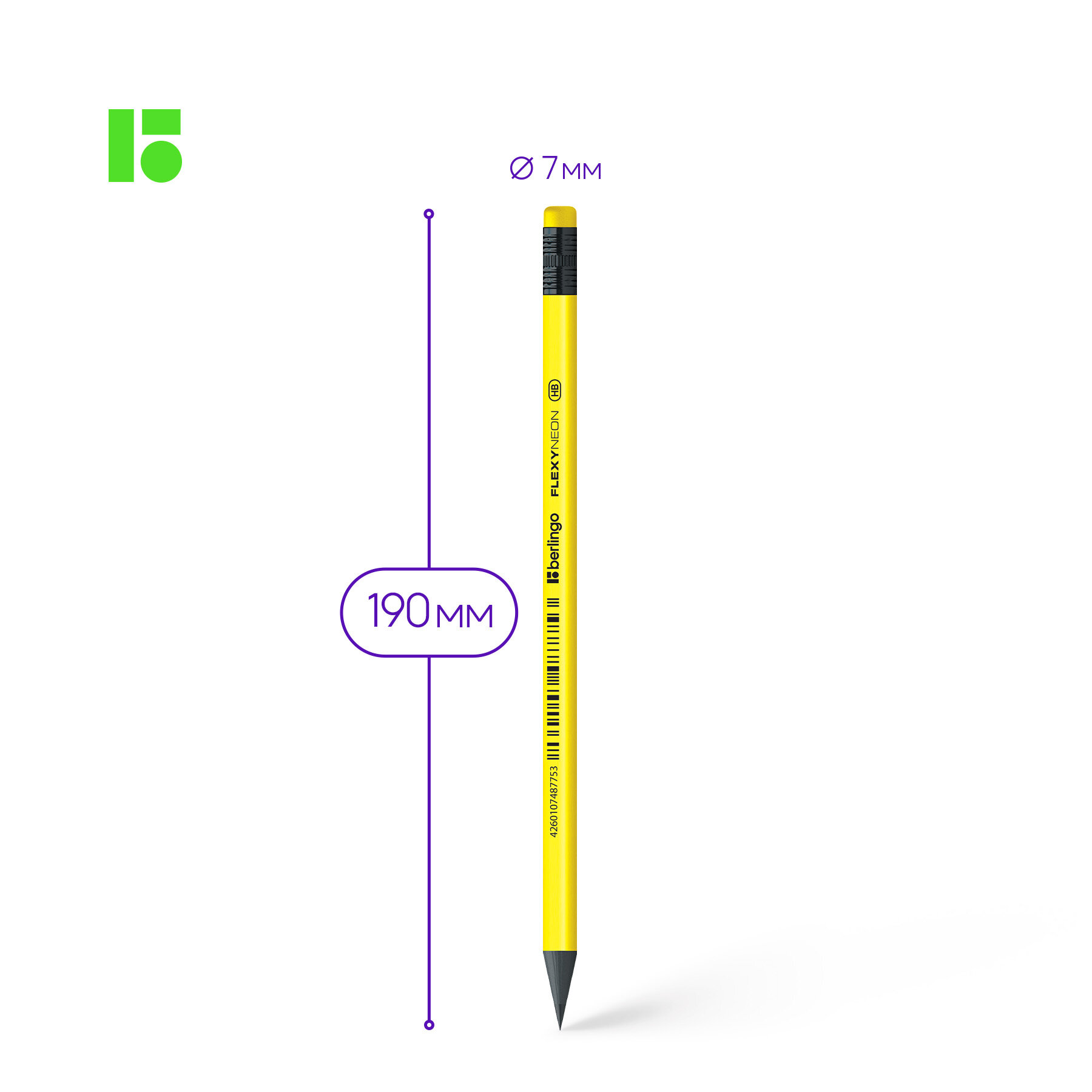 Карандаш чернографитный Berlingo "Flexy Neon" HB, с ластиком, заточенный, пластиковый, упаковка 12 шт.