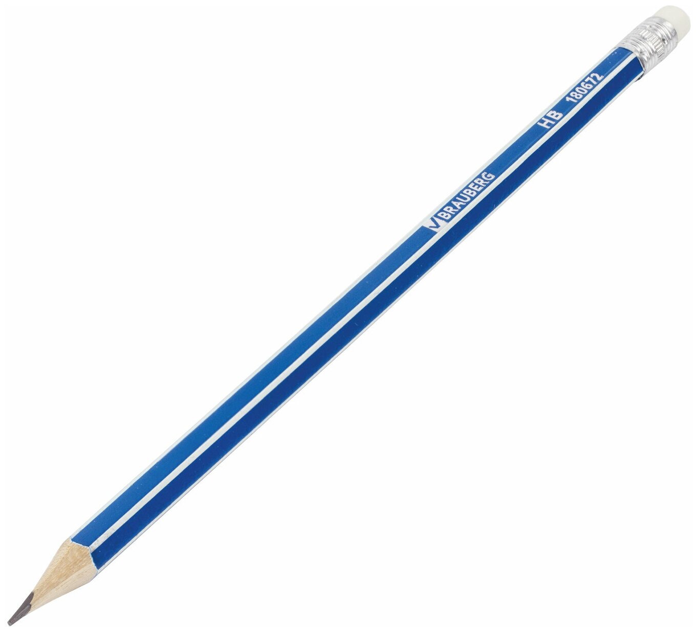 Купить Карандаши простые чернографитные Brauberg Набор 12 шт, Ztx, Hb, с резинкой / ластиком, синий корпус, картонная упаковка, 180672
