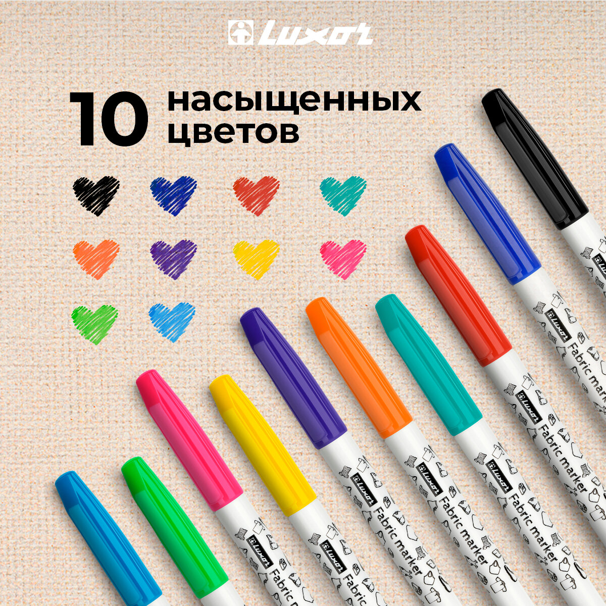 Набор маркеров для ткани Luxor "Fabric", пулевидный, 1-2мм, 10цв, ПВХ, европодвес интересное: