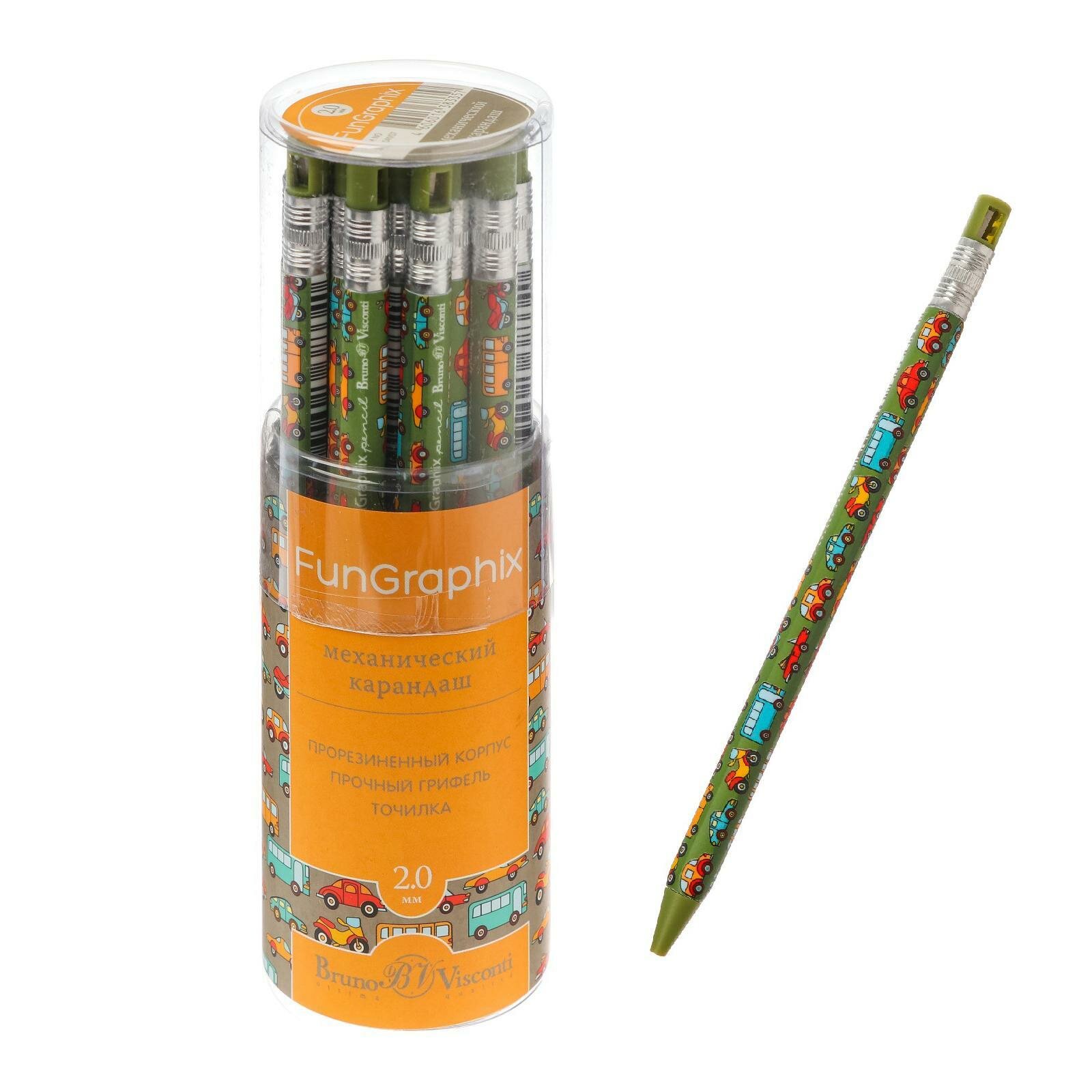 Карандаш механический цанговый 2 мм, 1шт BRUNO VISCONTI "FunGraphix", "Машинки", точилка интересное: