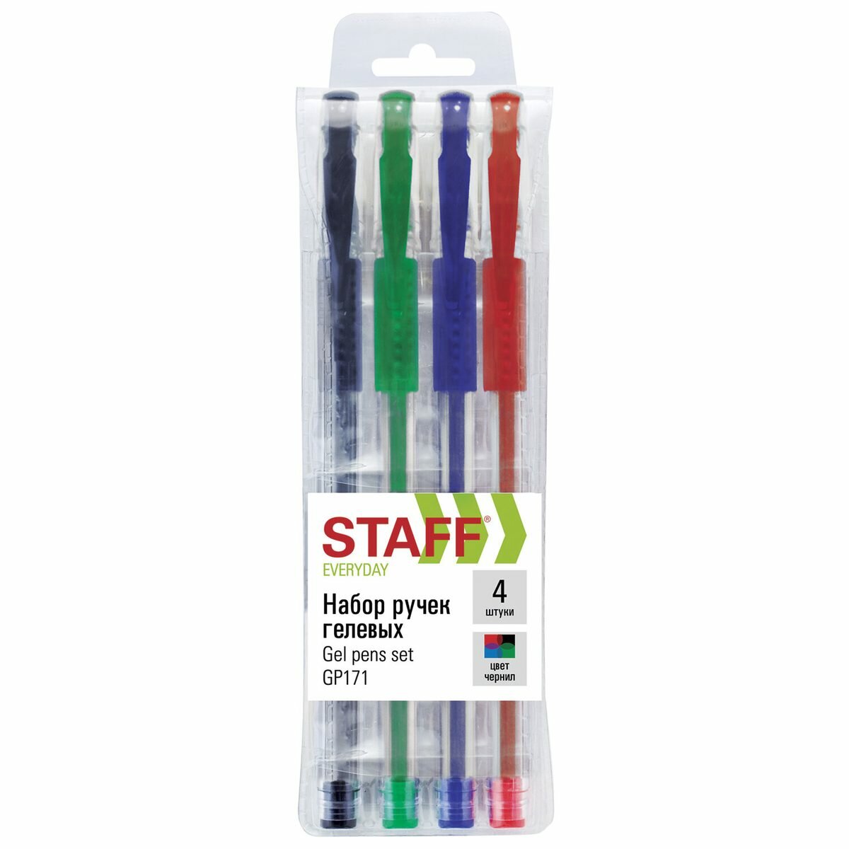 Ручки гелевые с грипом STAFF "EVERYDAY" GP-171, набор 4 ЦВЕ