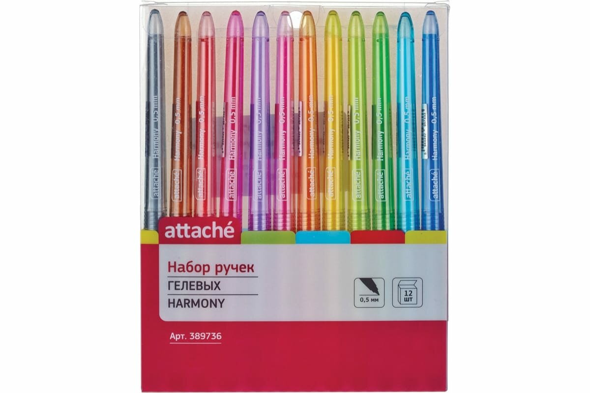 Купить Ручки гелевые цветные Attache, линия письма 0.5 мм, набор 12 шт