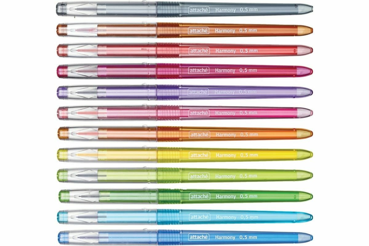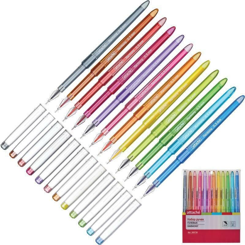 Ручки гелевые Attache, цветные, линия 0.5 мм, набор 12 шт