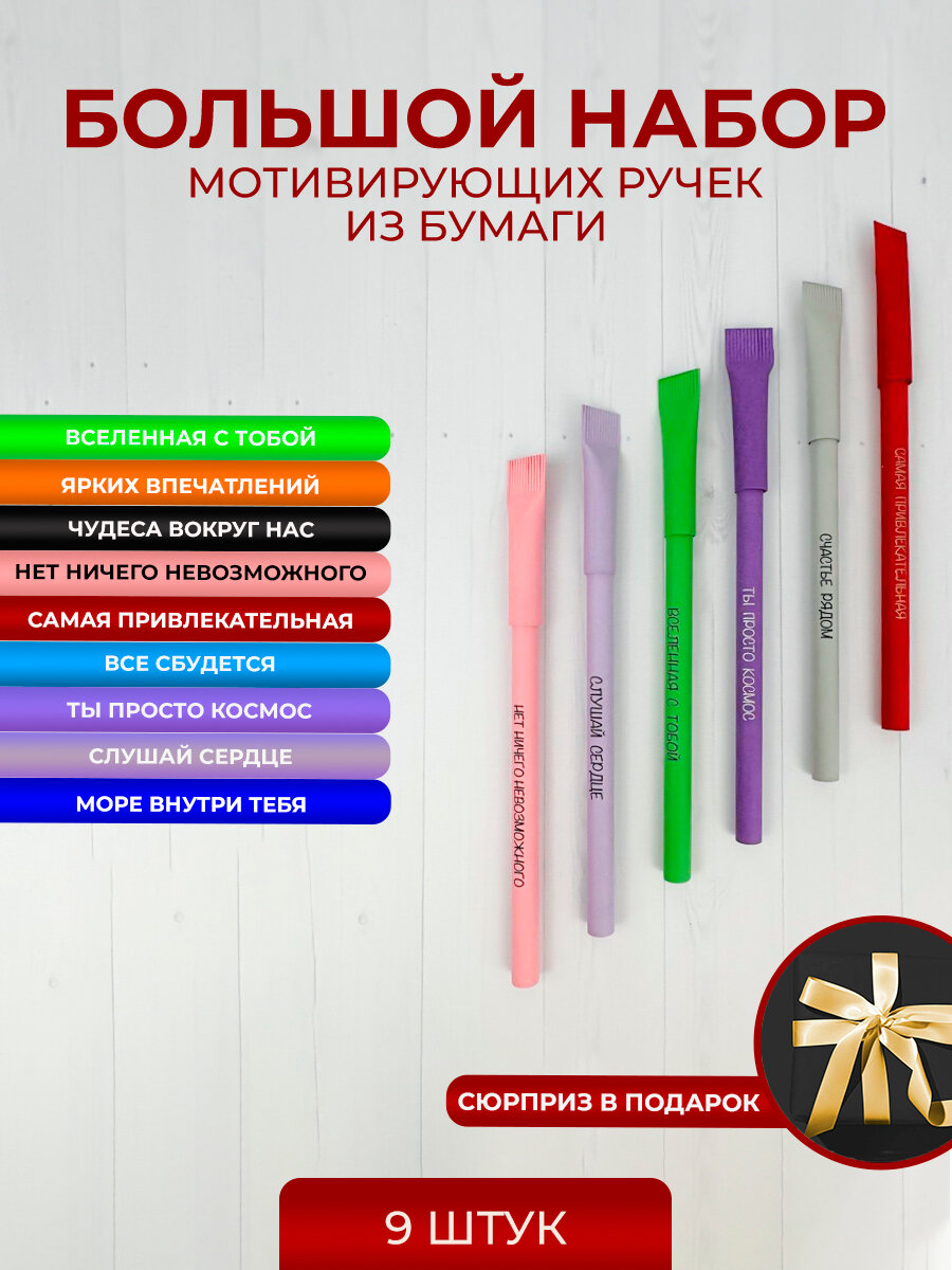 Купить Подарочный набор крафтовых ручек из картона с прикольной мотивирующей надписью / 9 штук / Крафт эко-ручки из бумаги