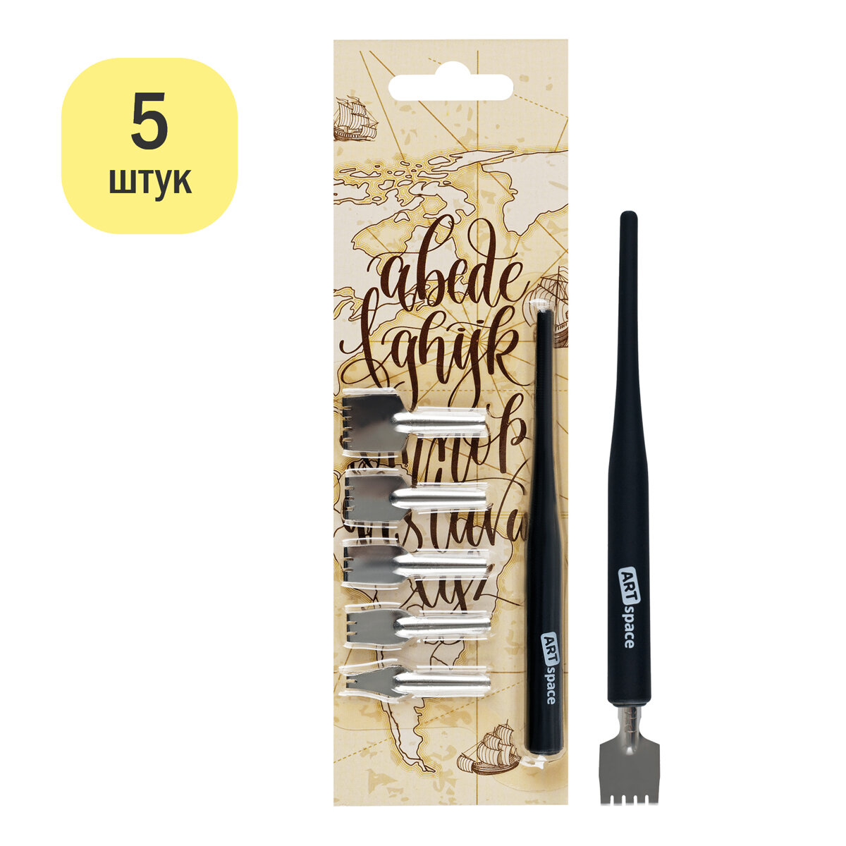 Перья каллиграфические ArtSpace, остроконечные, 4шт. с держателем, в пакете