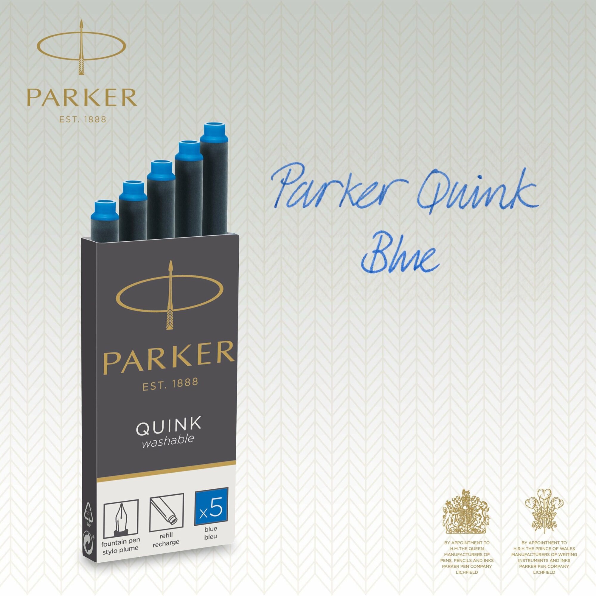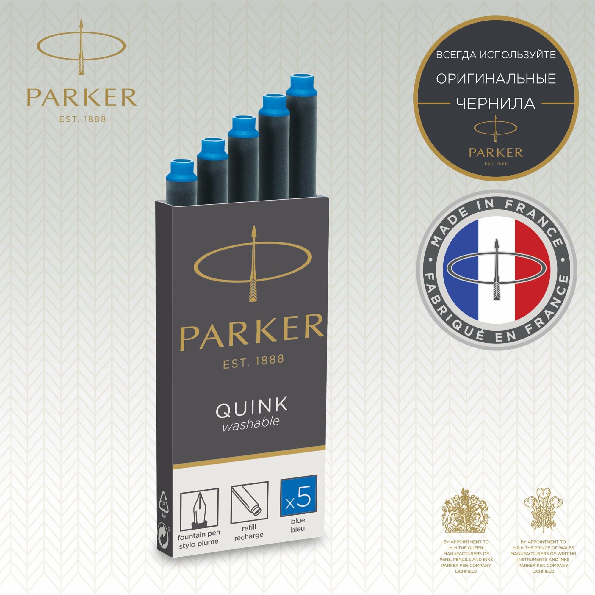 Картриджи чернильные Parker "Cartridge Quink" смываемые синие, 5шт., блистер