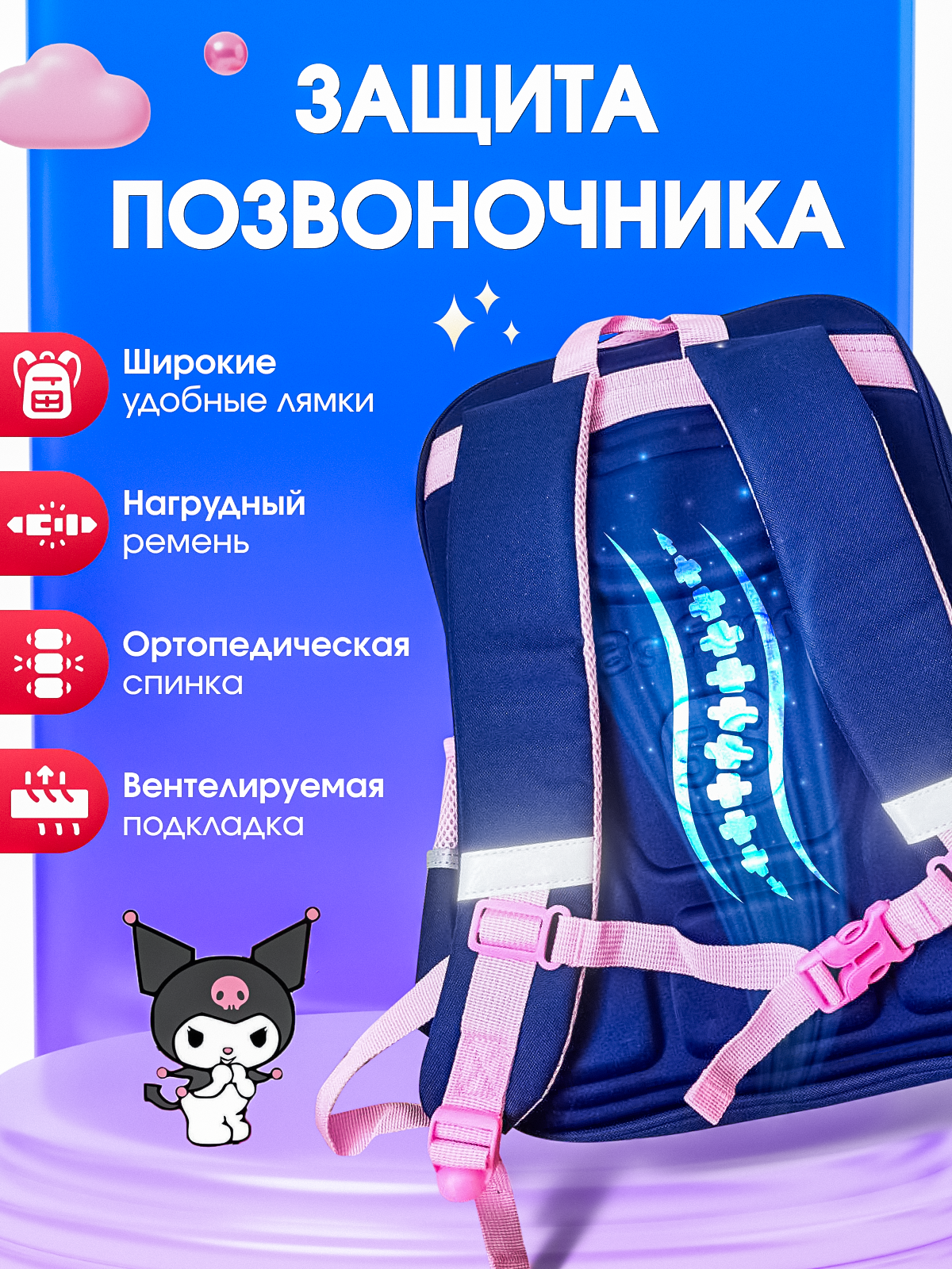Рюкзак аниме Куроми, школьный повседневный большой рюкзак Kuromi для девочки, для подростка 3-6 класс интересное: