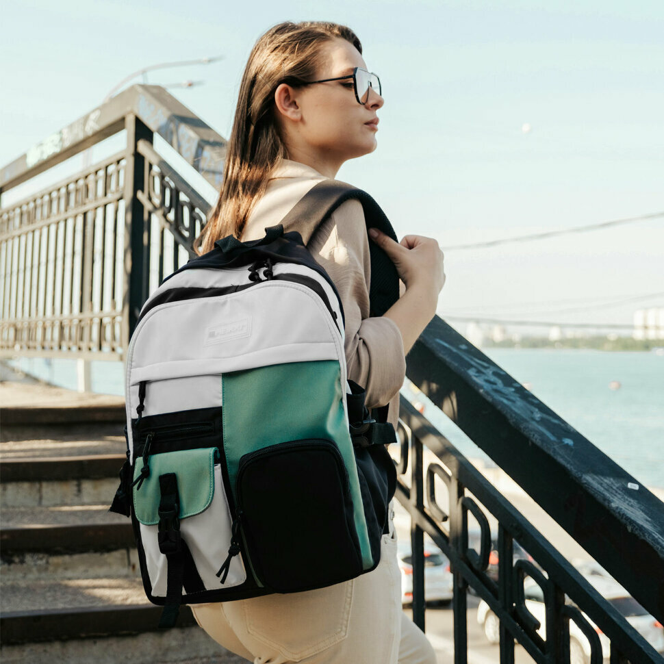 Рюкзак универсальный HEIKKI Blocks, 2 отделения, черный/бирюзовый/бежевый, 44х32х17 см