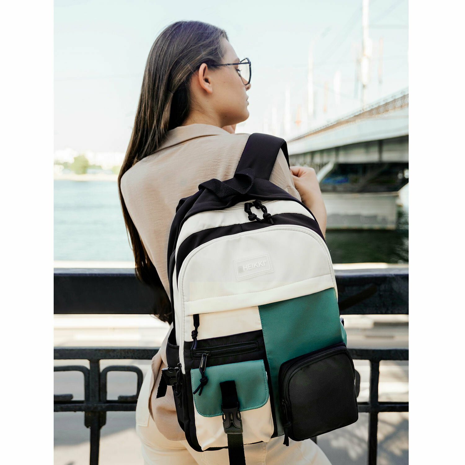 Рюкзак HEIKKI BLOCKS (хейки) универсальный, 2 отделения, черный/бирюзовый/бежевый, 44х32х17 см, 272562, 272562 интересное: